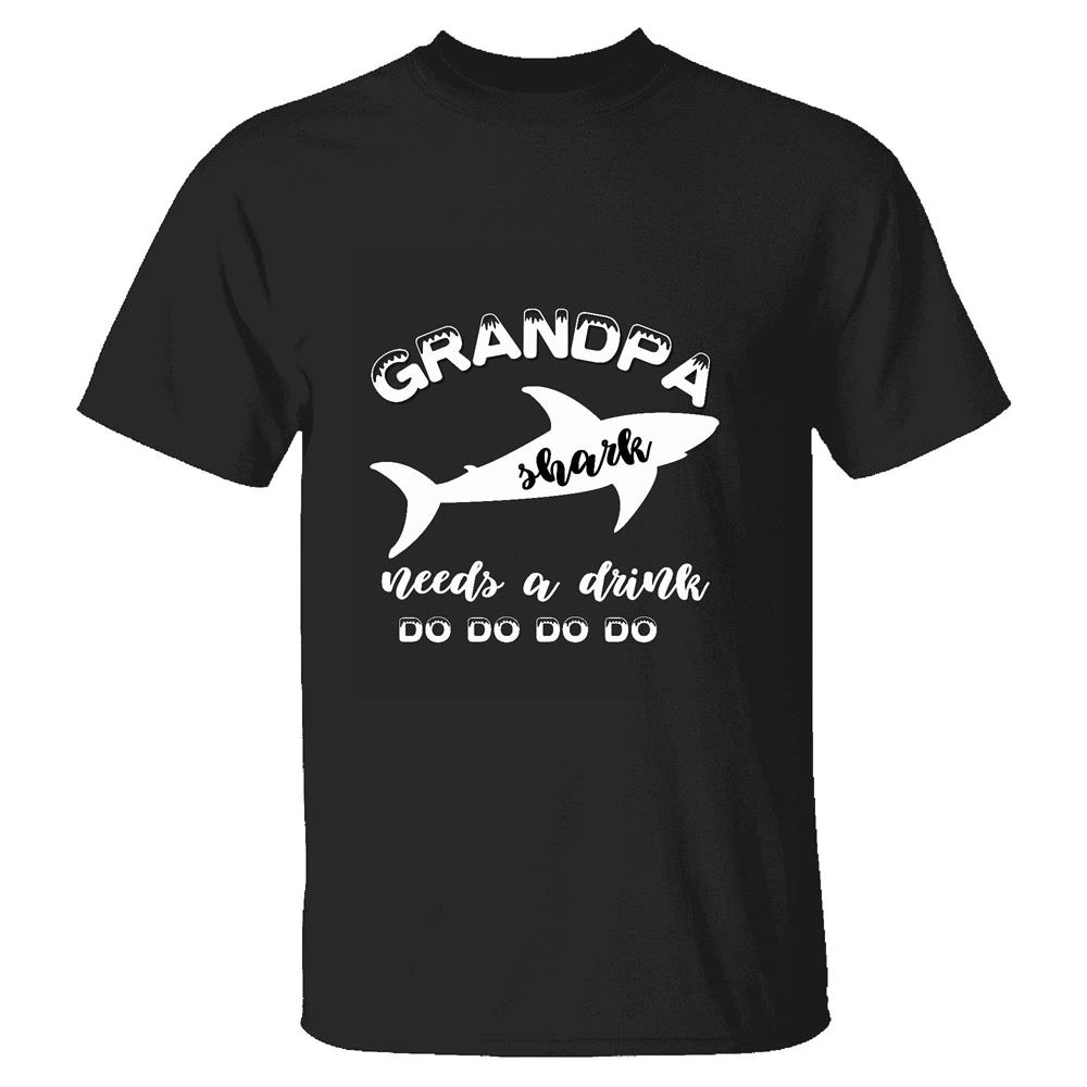 Funny Fathers Day Gift for Grandpa Shark Needs a Drink Men Women White Gray Multicolor T shirt
