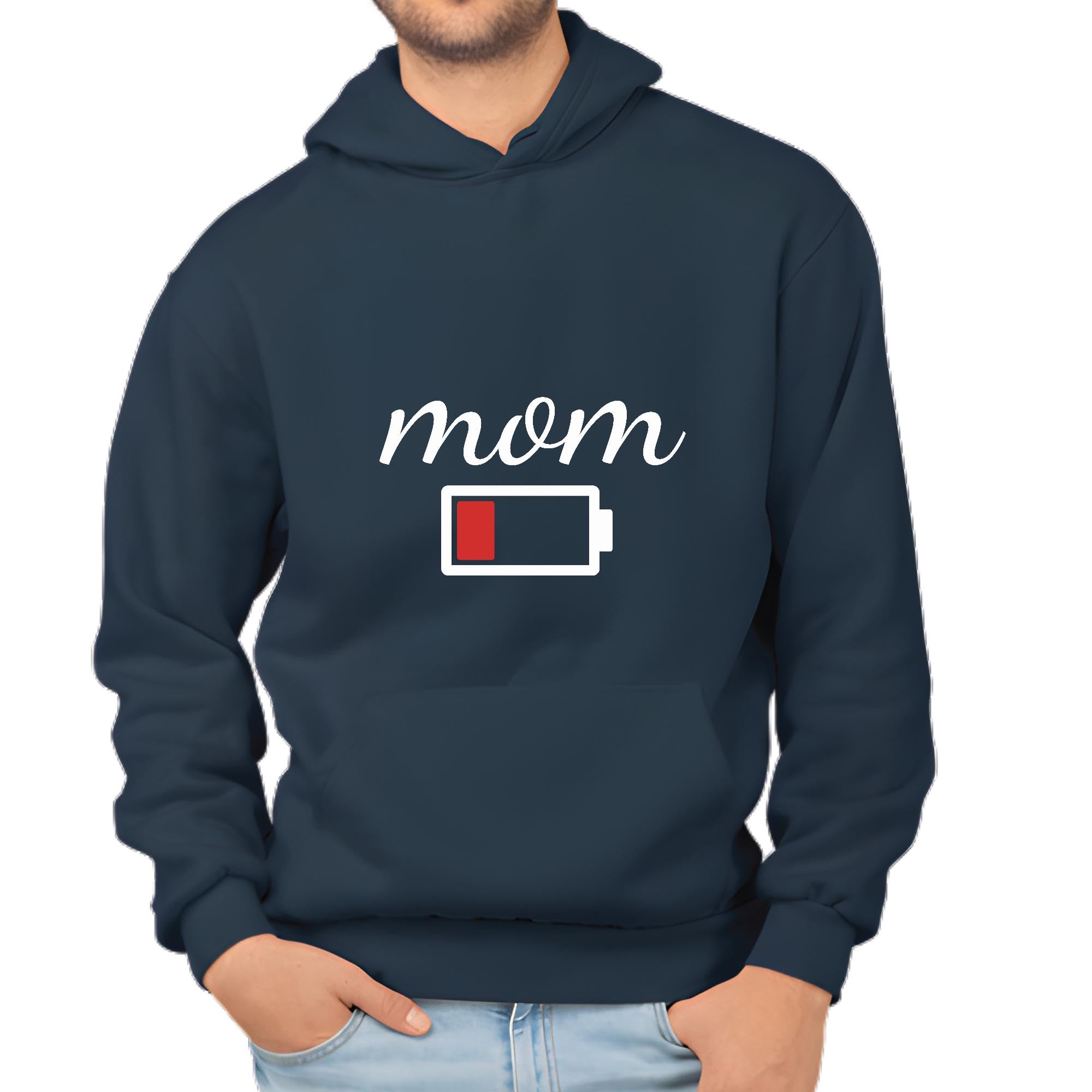 Funny Mom Gift Low Battery Sweatshirts 15oz for Mothers Day Navy and Muticolor Unisex Hoodie