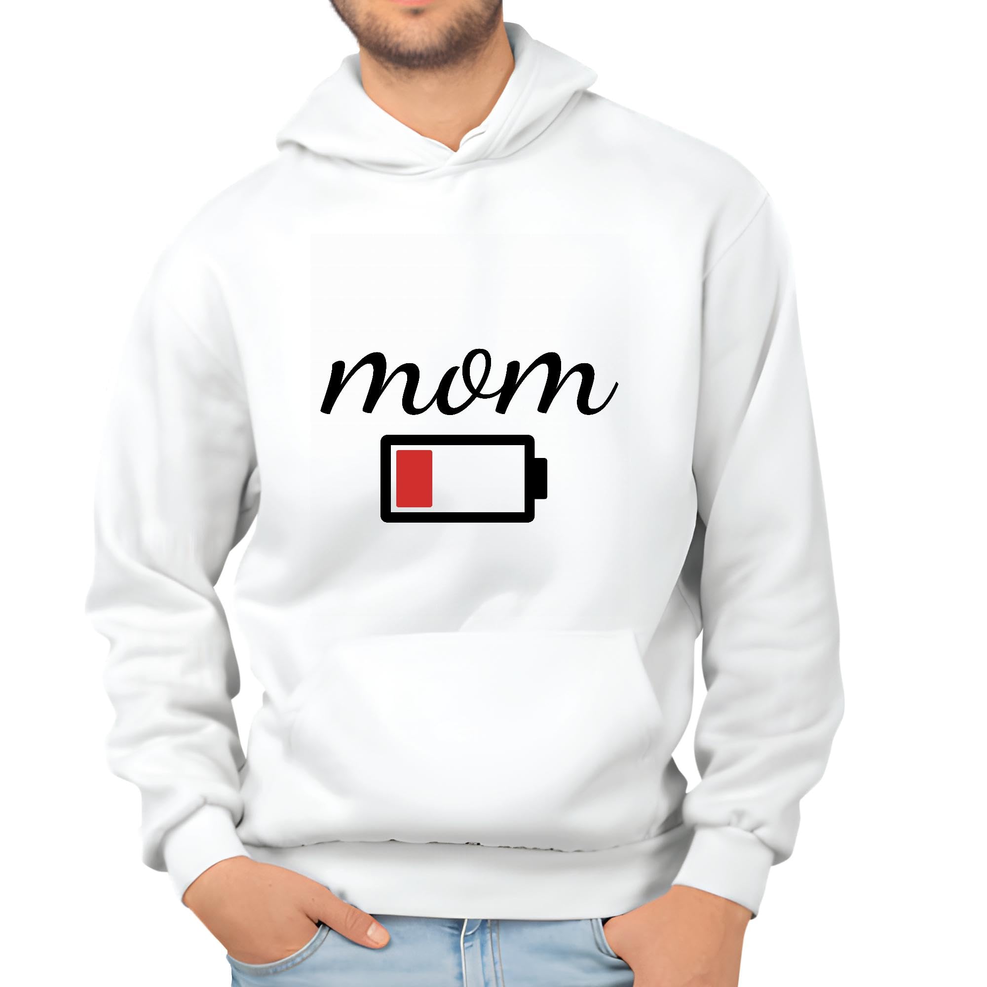 Funny Mom Gift Low Battery Sweatshirts 15oz for Mothers Day White and Muticolor Unisex Hoodie