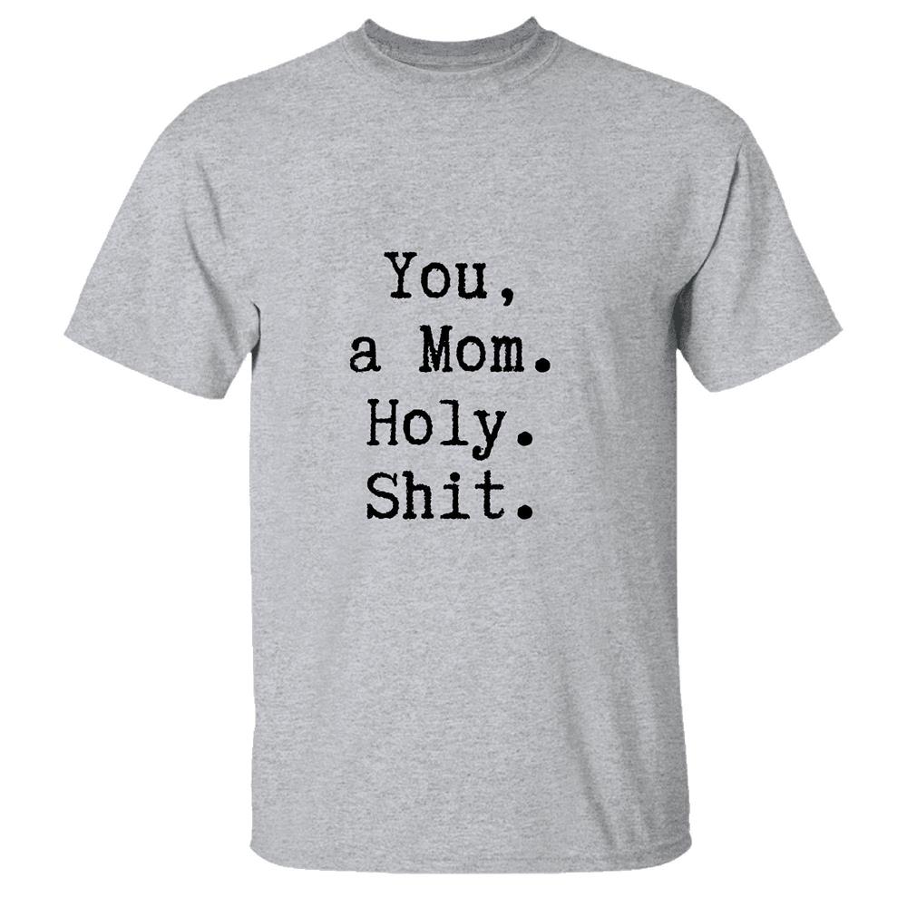 Funny Mothers Day Gift for Mom Holy Shit Humor Men Women White Gray Multicolor T shirt