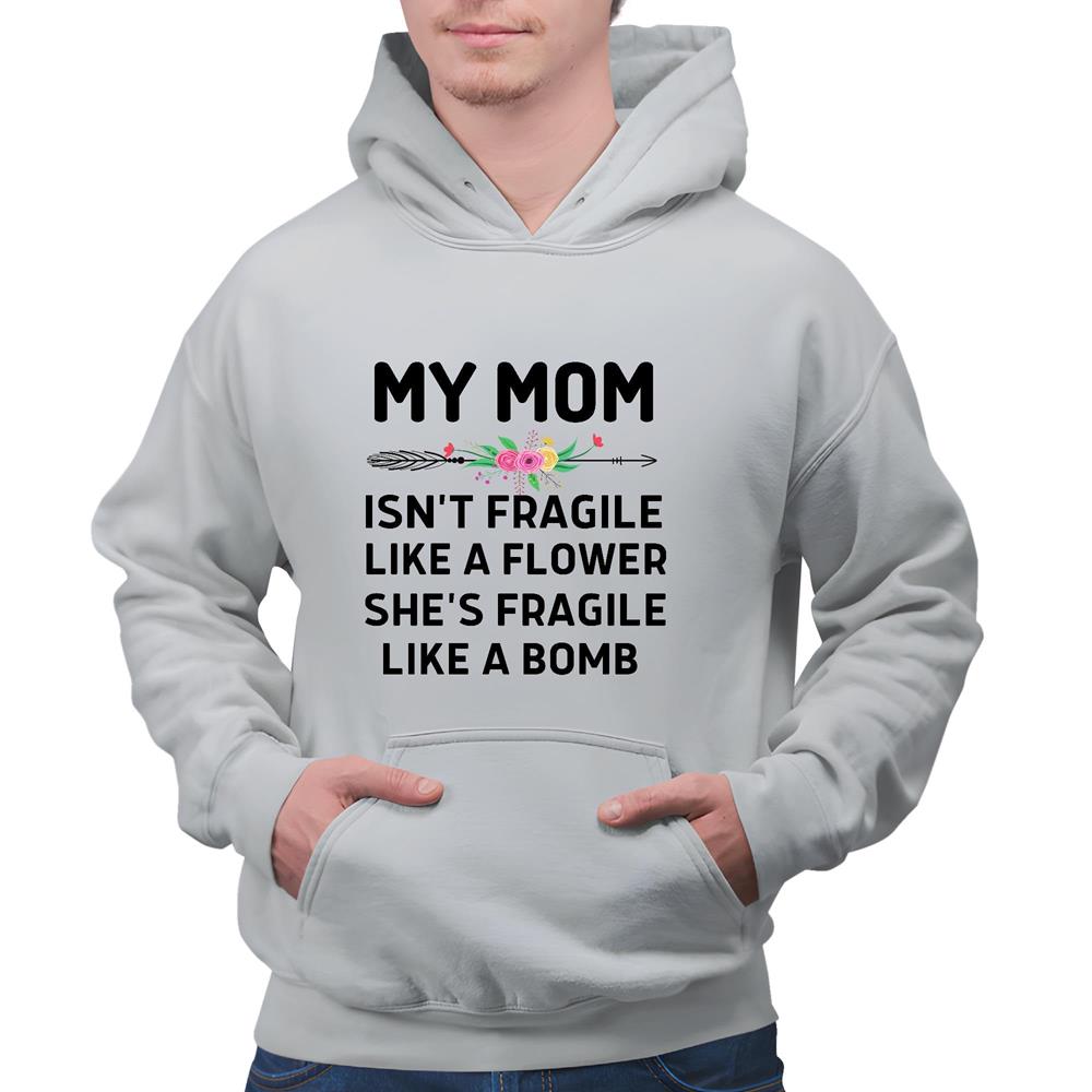 Funny Mothers Day Gift for Mom Who is Strong Like a Bomb Gray and Muticolor Unisex Hoodie