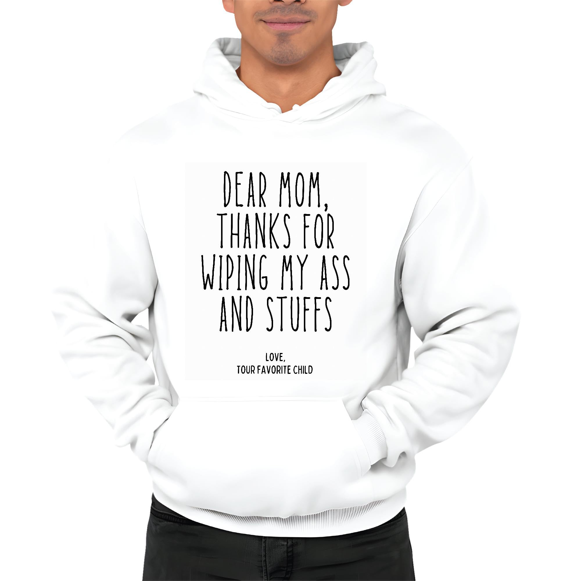 Funny Mothers Day Gift for Mom Mama Thanks for Wiping My Ass and Stuffs White and Muticolor Unisex Hoodie