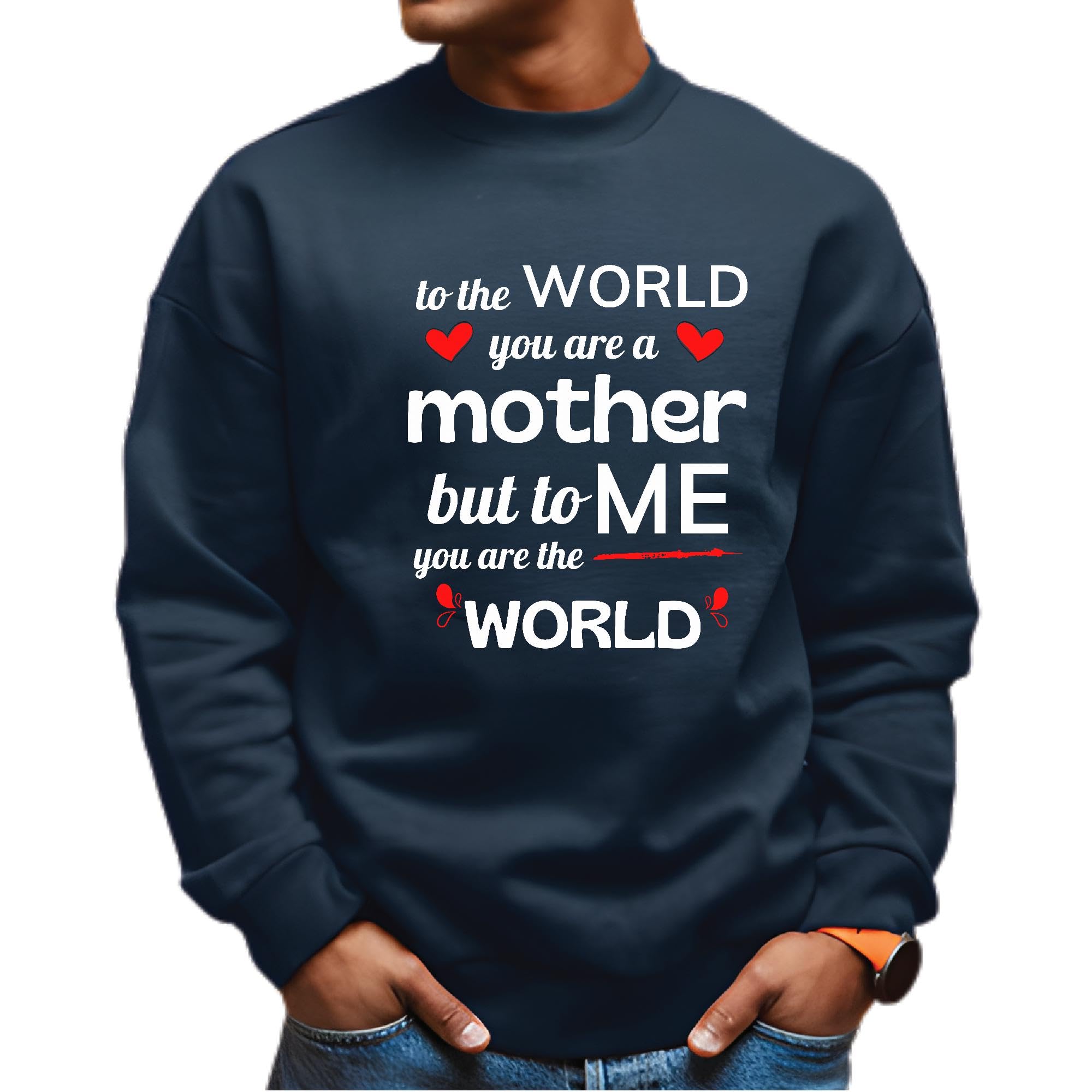 Funny Mothers Day Gift for Mom You are the World to Me Navy Muticolor Unisex Sweatshirt