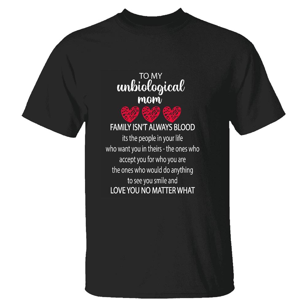 Gift for Bonus Mom on Mothers Day Unbiological Family is Not Always Blood Men Women Black Multicolor T shirt
