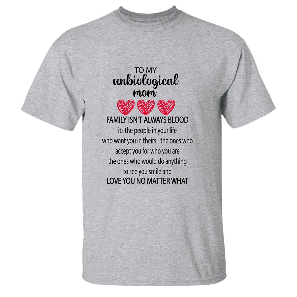 Gift for Bonus Mom on Mothers Day Unbiological Family is Not Always Blood Men Women White Gray Multicolor T shirt