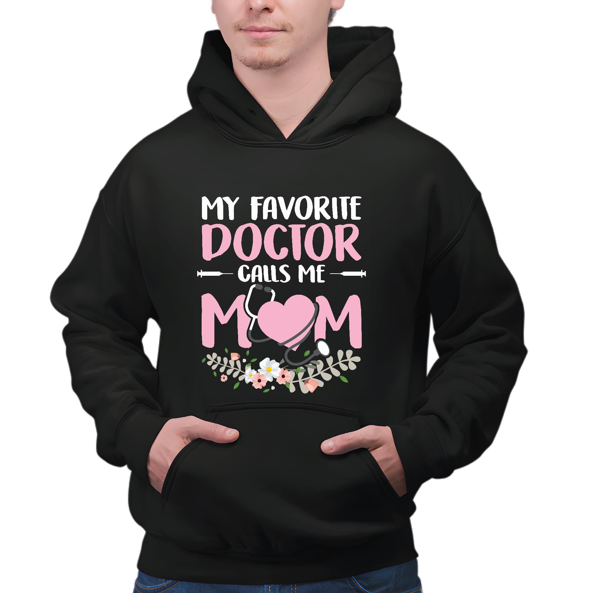 Gift for Doctor Mom on Mothers Day – Show Appreciation to Your Favorite Doctor Black and Muticolor Unisex Hoodie