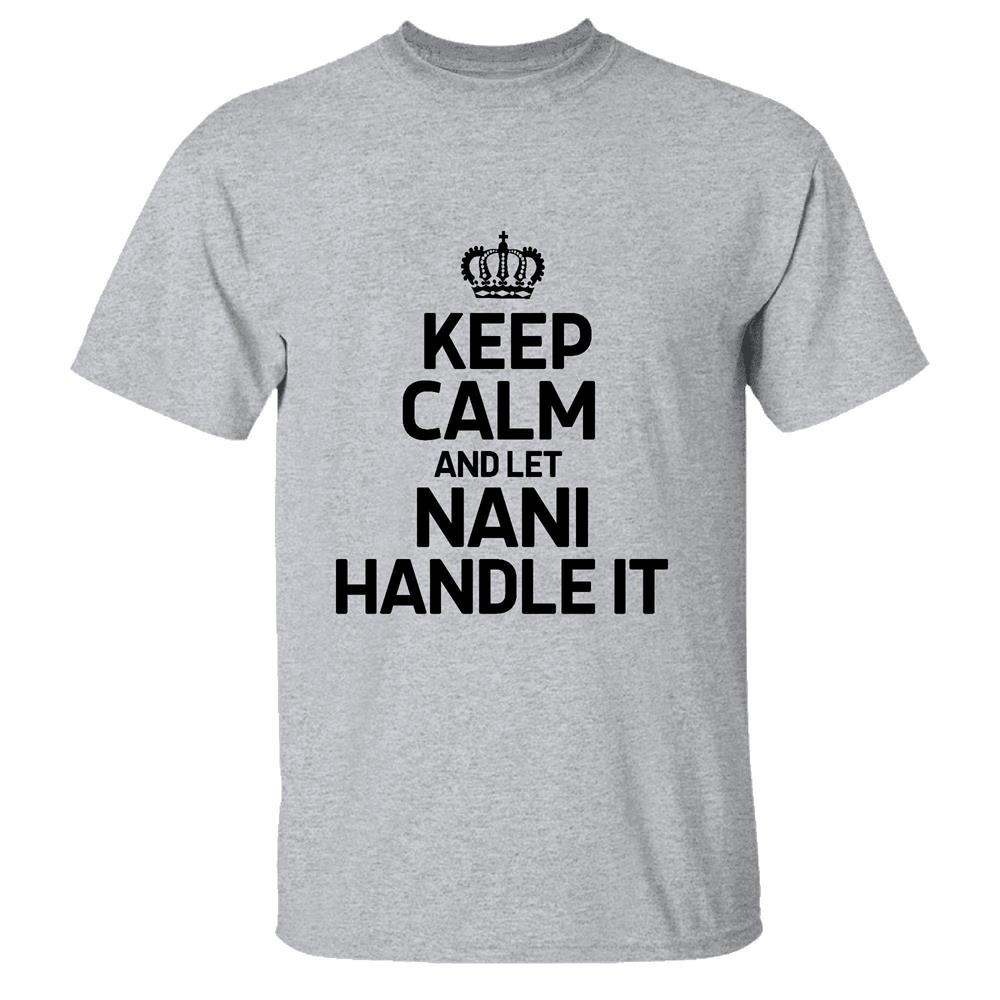 Gift for Grandma Grandmother on Mothers Day Keep Calm Nani Handle Funny Humor Men Women White Gray Multicolor T shirt