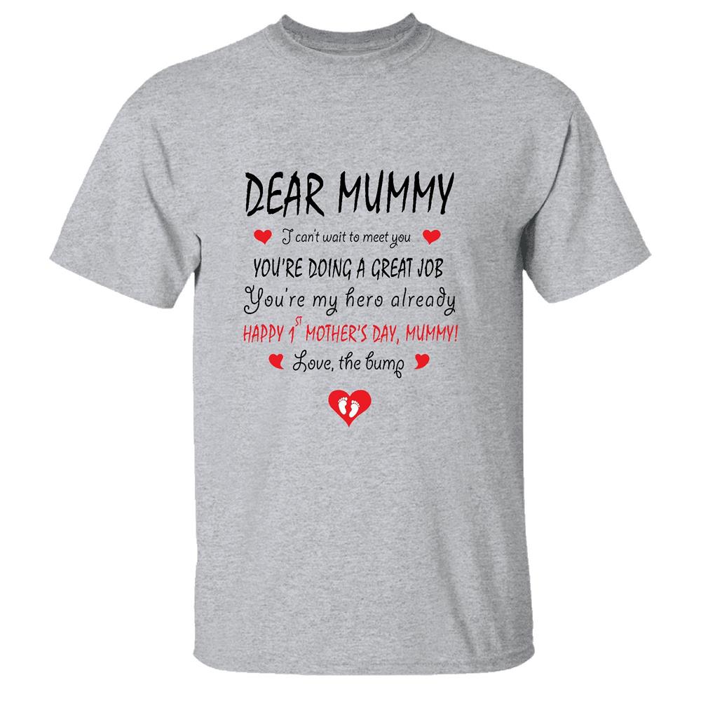 Gift for Pregnant New Mom on First Mothers Day Funny Men Women White Gray Multicolor T shirt
