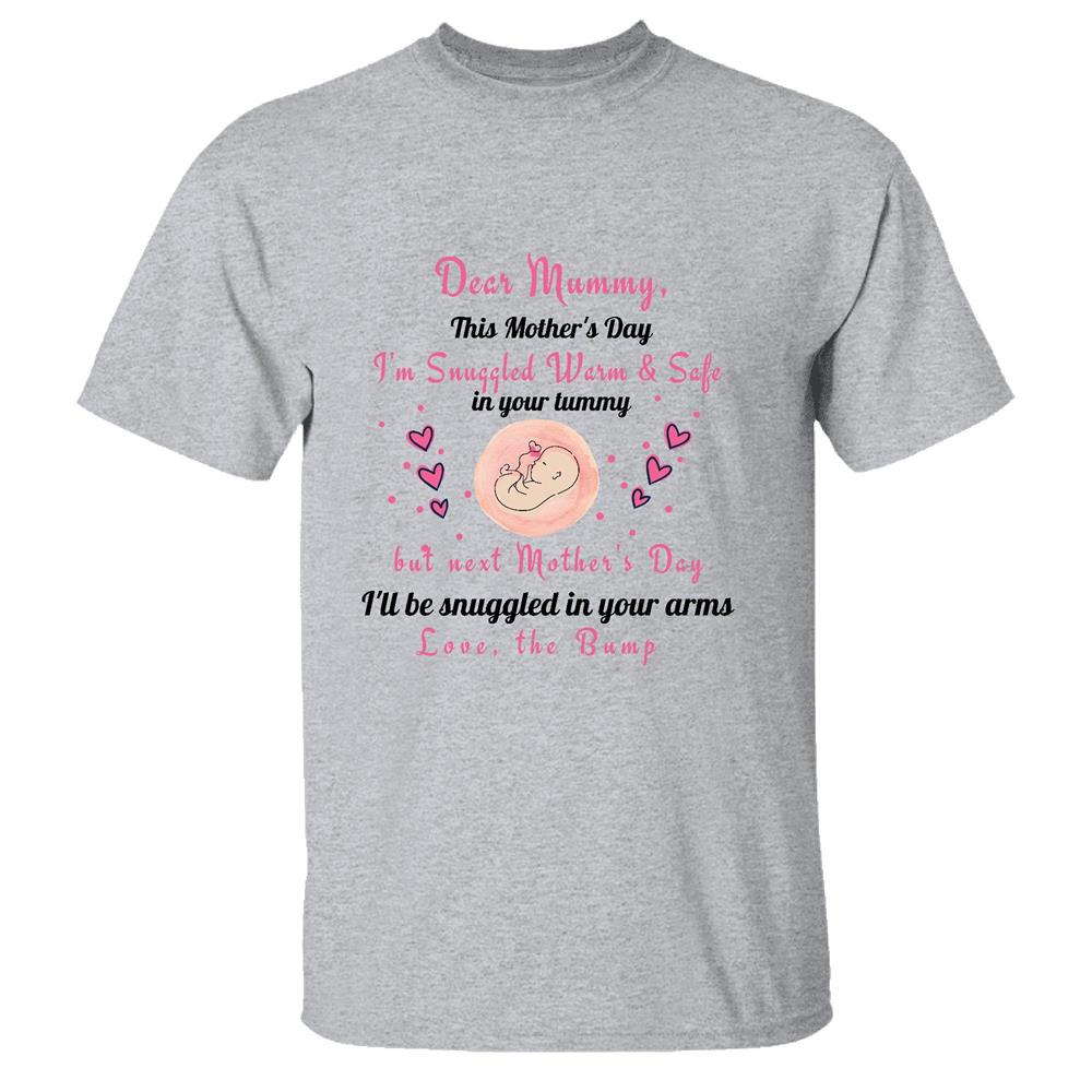 Gift for Pregnant Mom on Mothers Day from Baby Men Women White Gray Multicolor T shirt