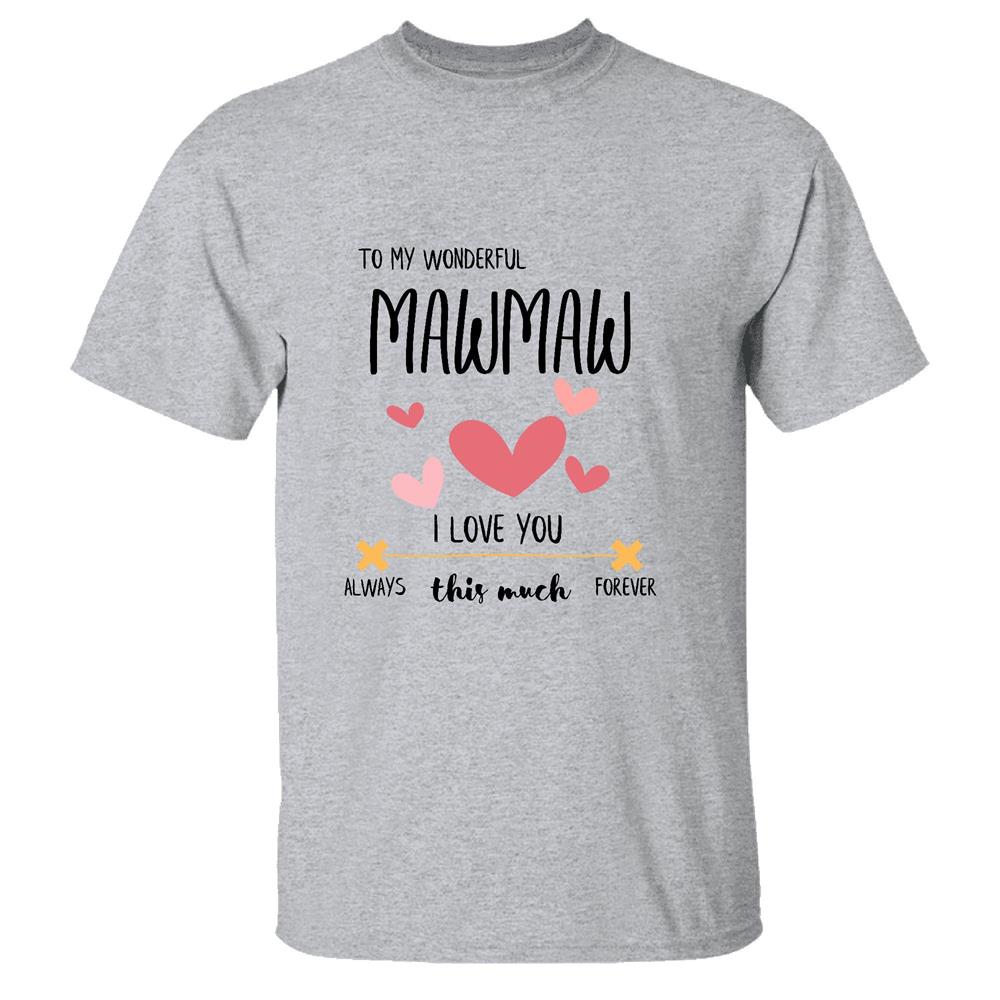 Gift for Wonderful Mawmaw to Show Love on Mothers Day Men Women White Gray Multicolor T shirt