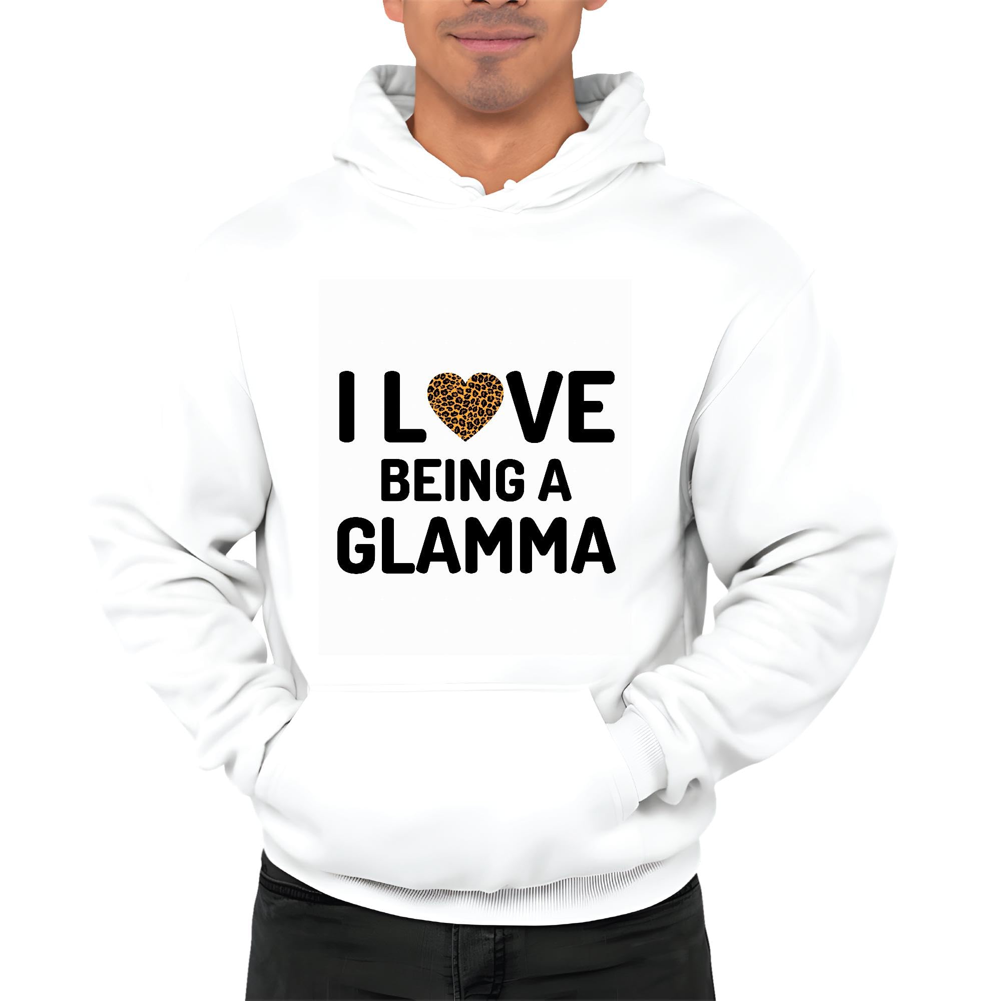 Glamma Leopard Humor Gift for Grandma Plaid Style Mothers Day White and Muticolor Unisex Hoodie