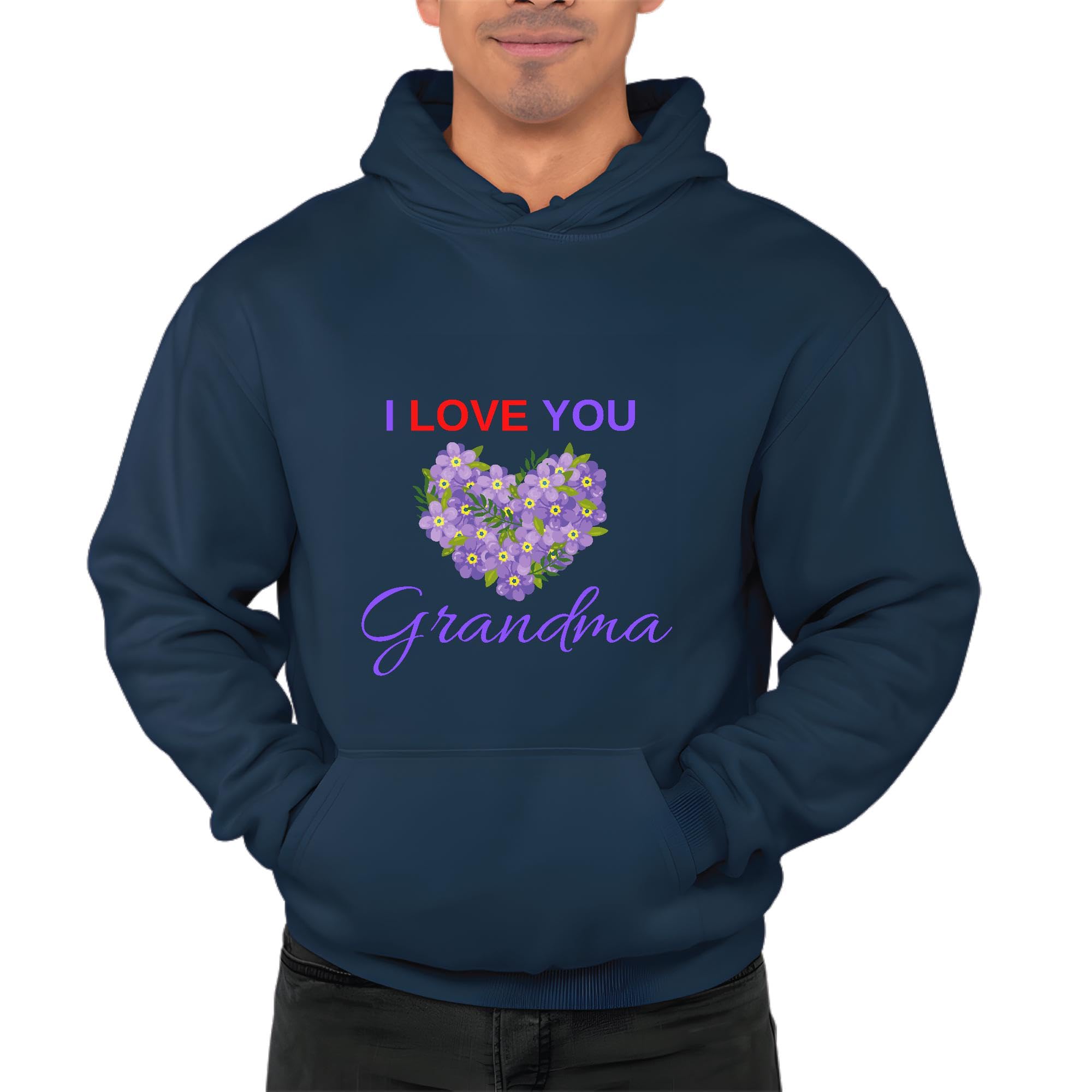 Grandma Heart Floral Gift for Mothers Day Perfect for Grandkids Navy and Muticolor Unisex Hoodie
