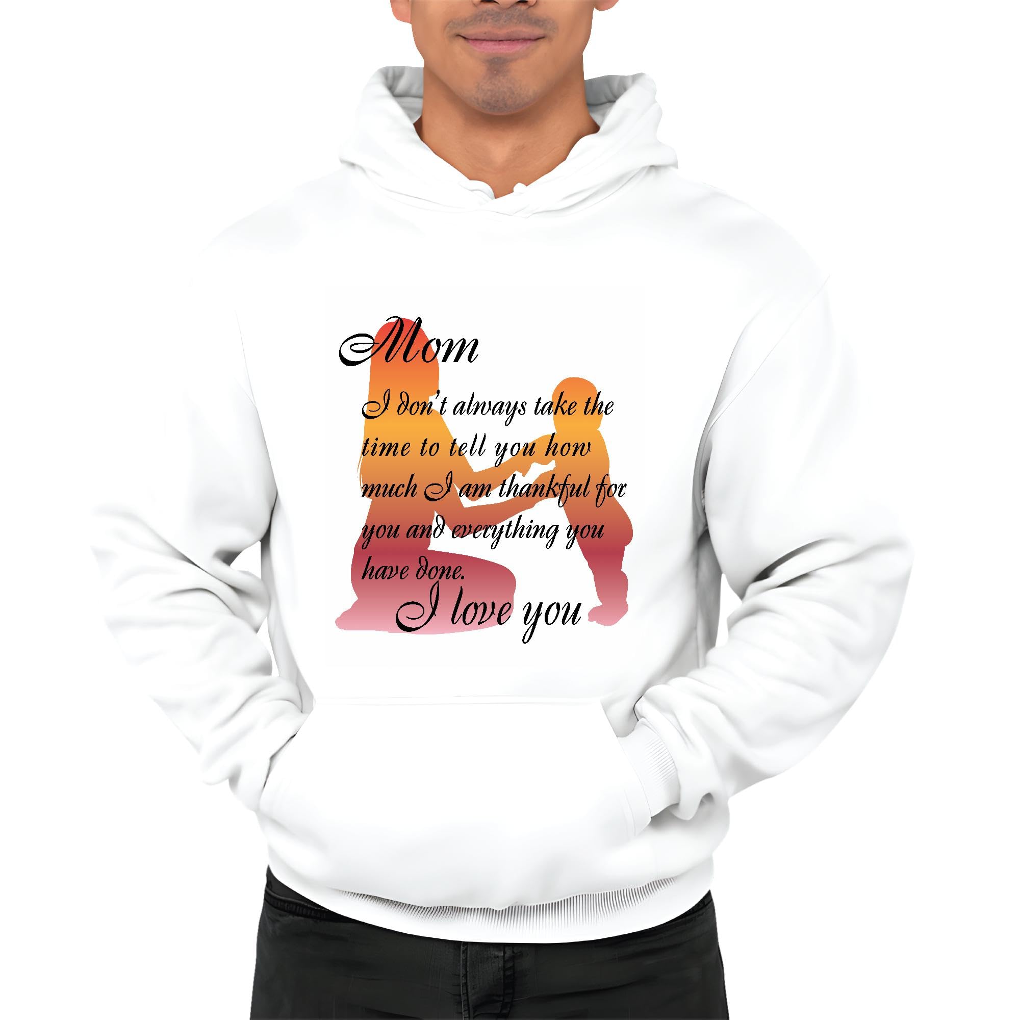 Mom Mothers Day from Daughter Son Kids I Love You Mom Funny White and Muticolor Unisex Hoodie