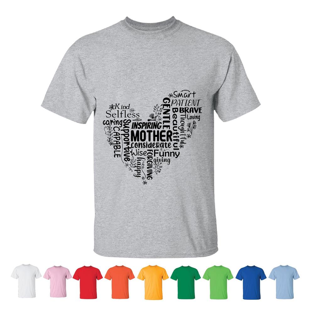 Mother Heart Mothers Day Gift for Mom Mama Mother Grandma Men Women White Gray T shirt