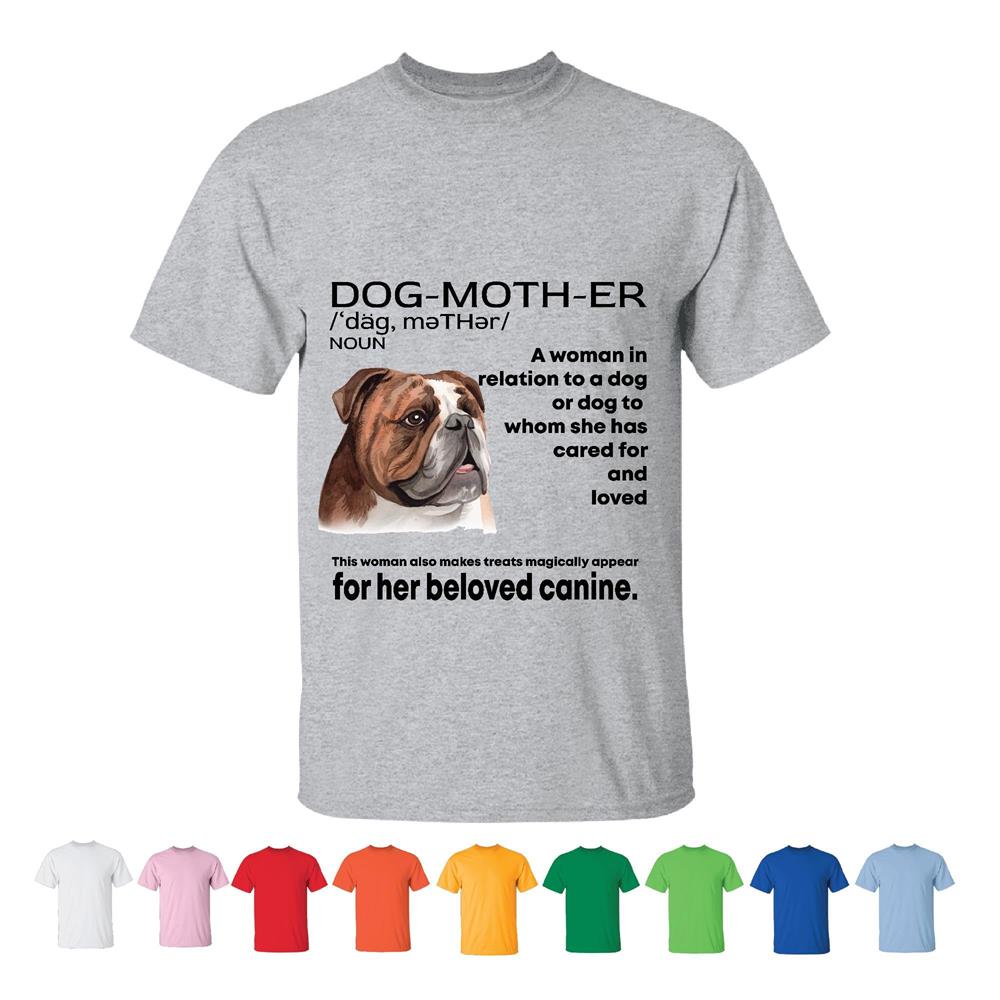 Mothers Day Gift for Dog Lovers Bulldog Motifs and t-shirt Men Women White Gray T shirt