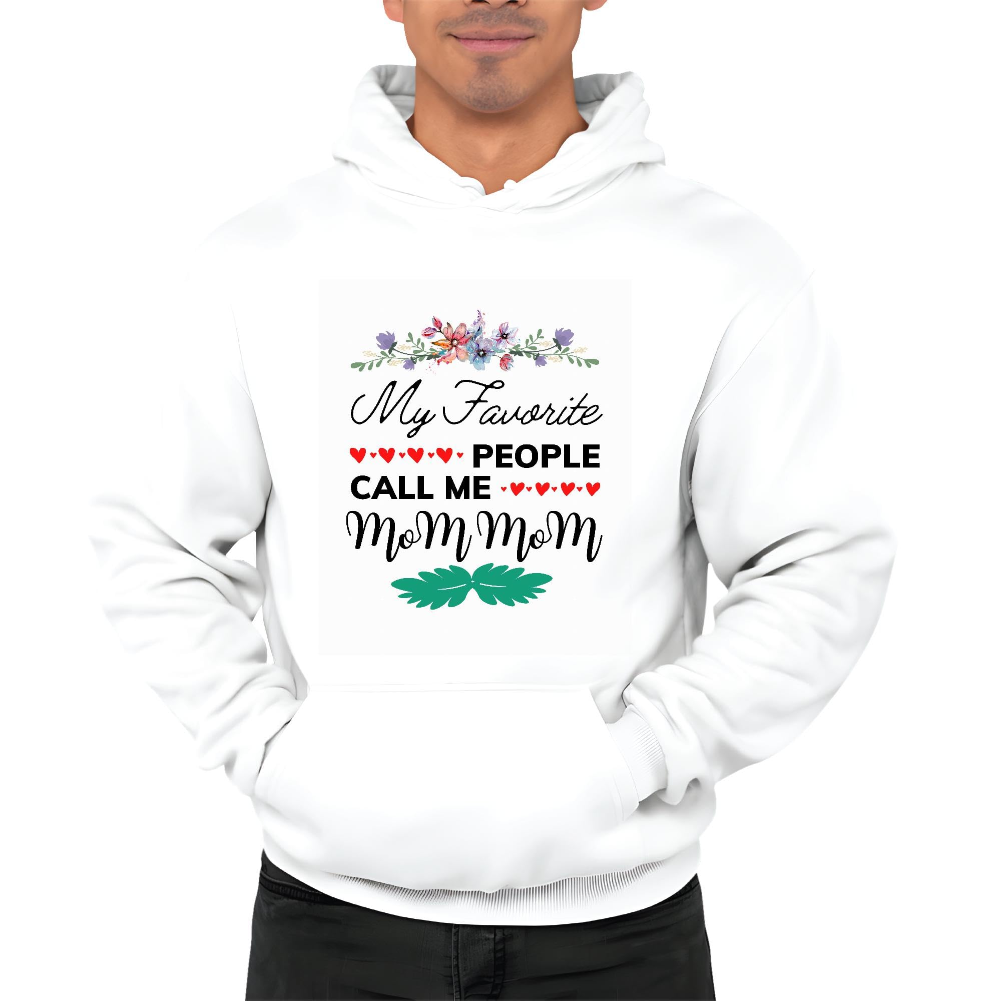 Mothers Day Gift for Grandma Humor Flower Graphic My Favorite People Call Me Mommom White and Muticolor Unisex Hoodie