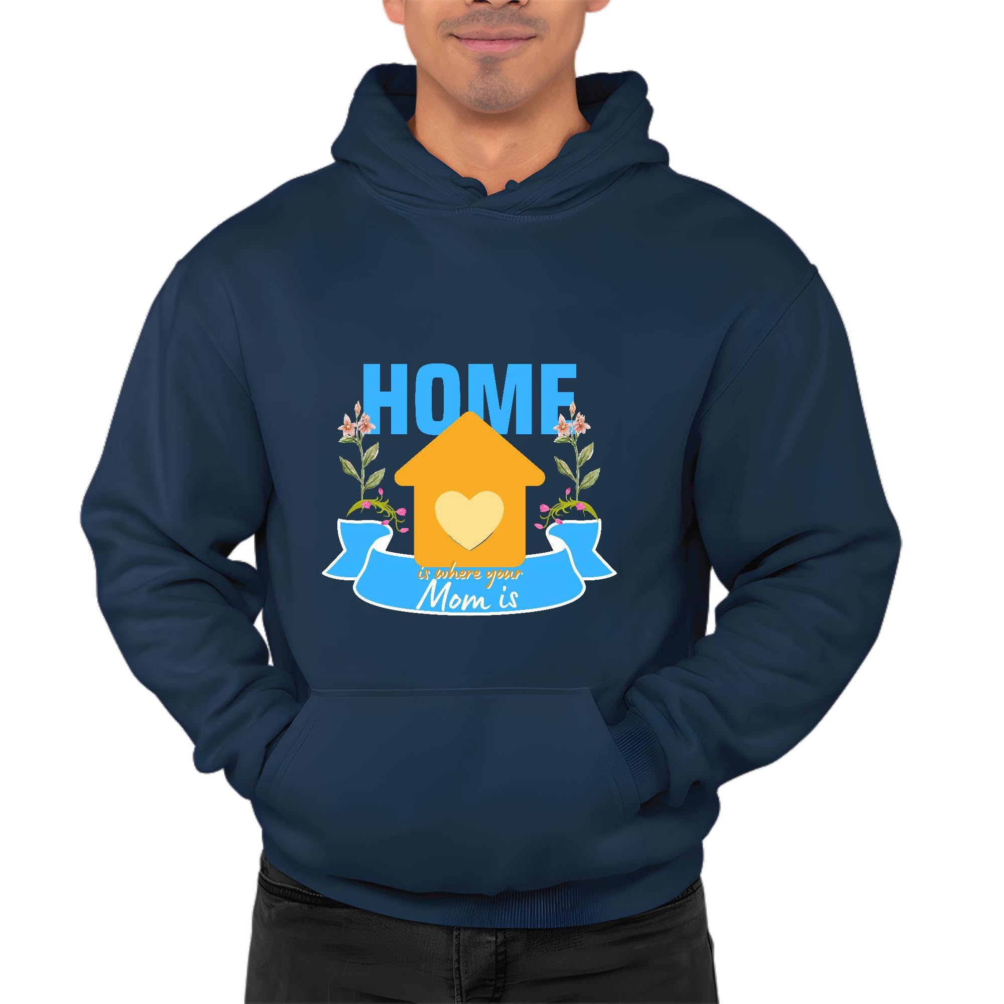 Mothers Day Gift for Mom Home is Where Your Mom Is Graphic Navy and Muticolor Unisex Hoodie