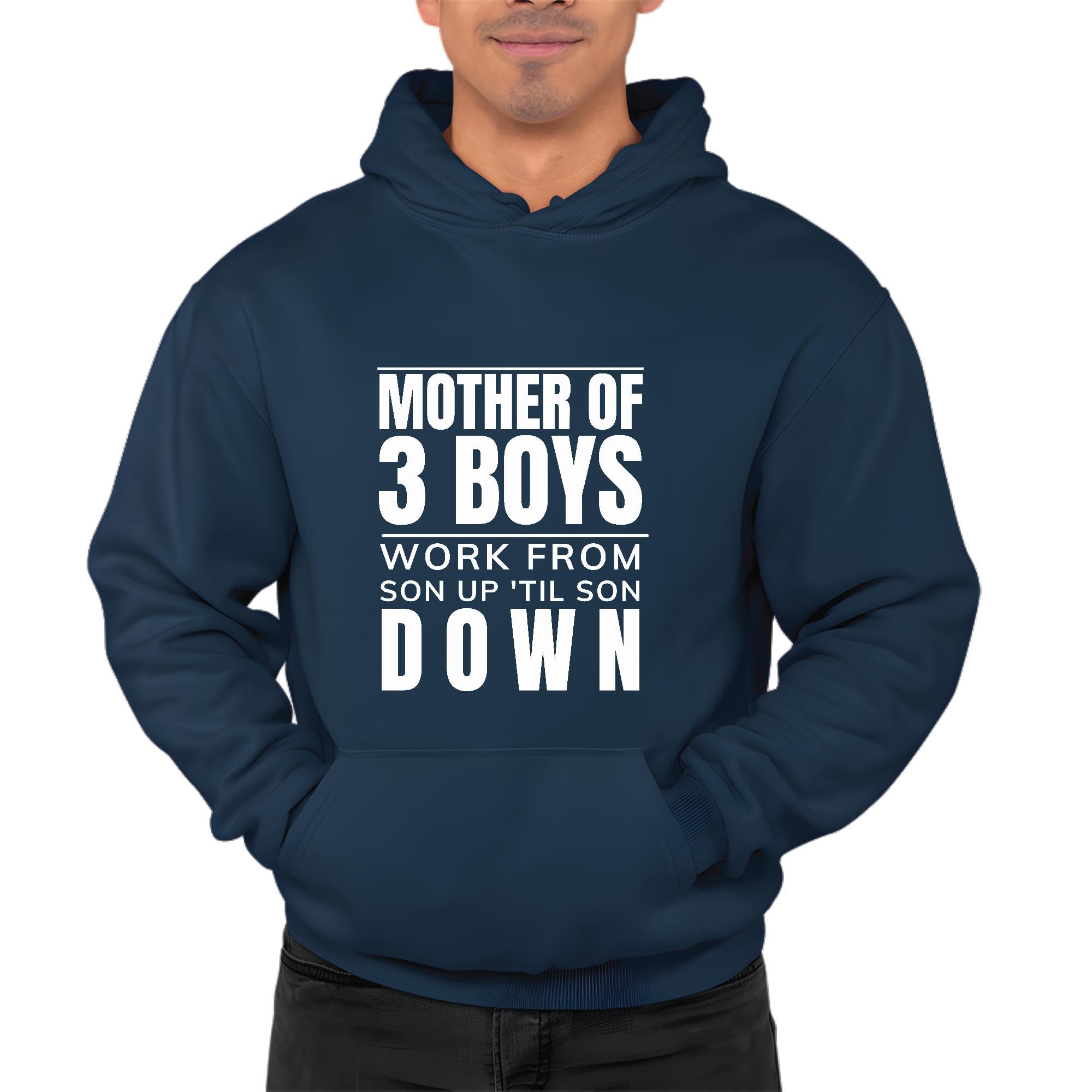 Mothers Day Gift for Mom of 3 Boys Work From Son Up Til Son Down Funny Navy and Muticolor Unisex Hoodie