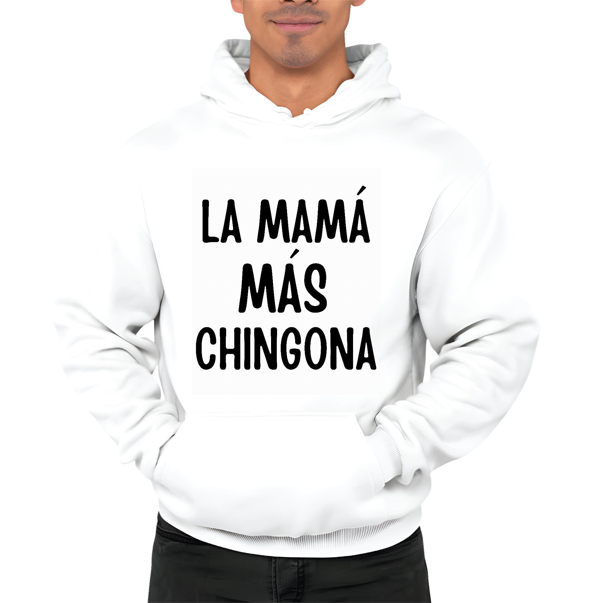Mothers Day Gift for Mom Mama Mas Chingona White and Muticolor Unisex Hoodie