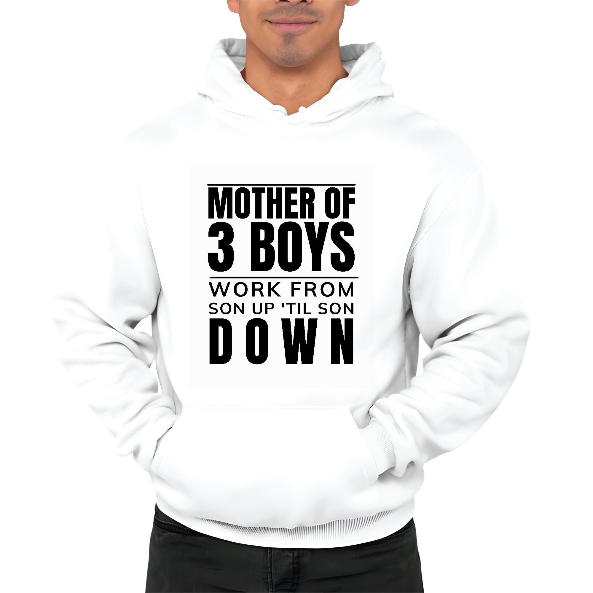 Mothers Day Gift for Mom of 3 Boys Work From Son Up Til Son Down Funny White and Muticolor Unisex Hoodie