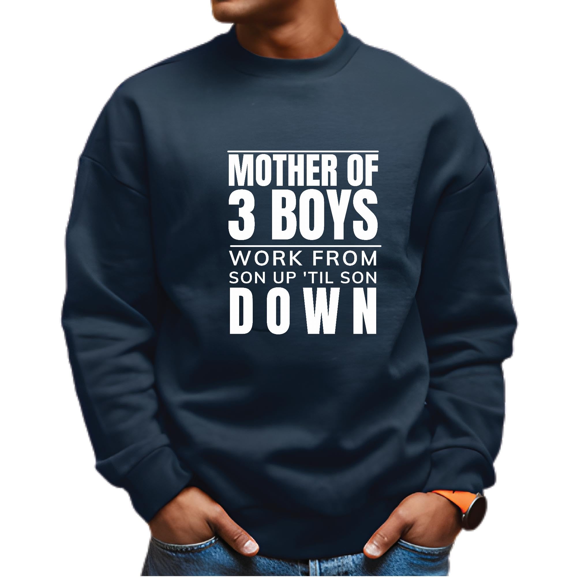 Mothers Day Gift for Mom of 3 Boys Work From Son Up Til Son Down Funny Navy Muticolor Unisex Sweatshirt