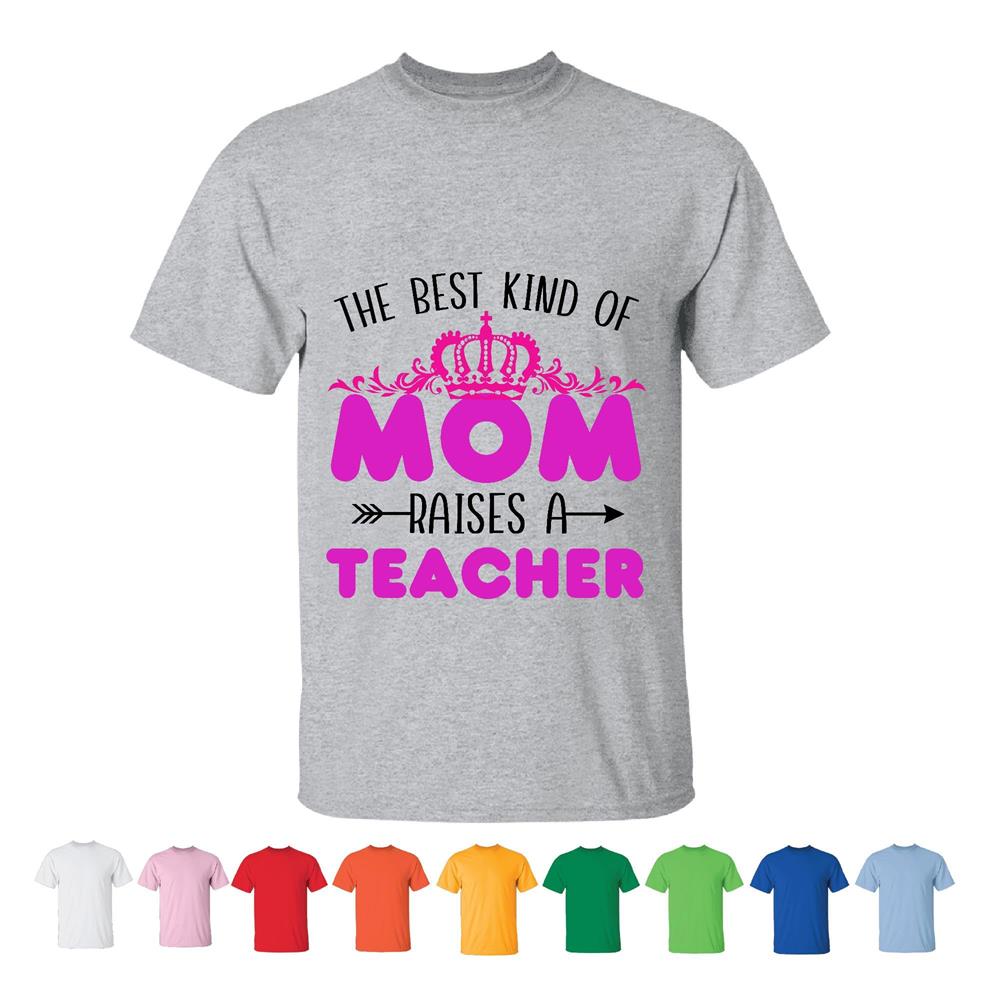 Mothers Day Gift For Mom Of Teacher Best Kind Raises Teacher Mom Men Women White Gray T shirt