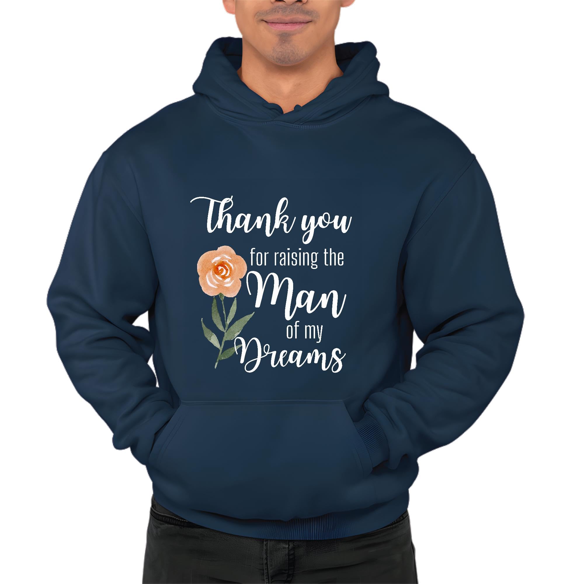Mothers Day Gift for Mother of Groom Thank You for Raising Man of Dreams Navy and Muticolor Unisex Hoodie