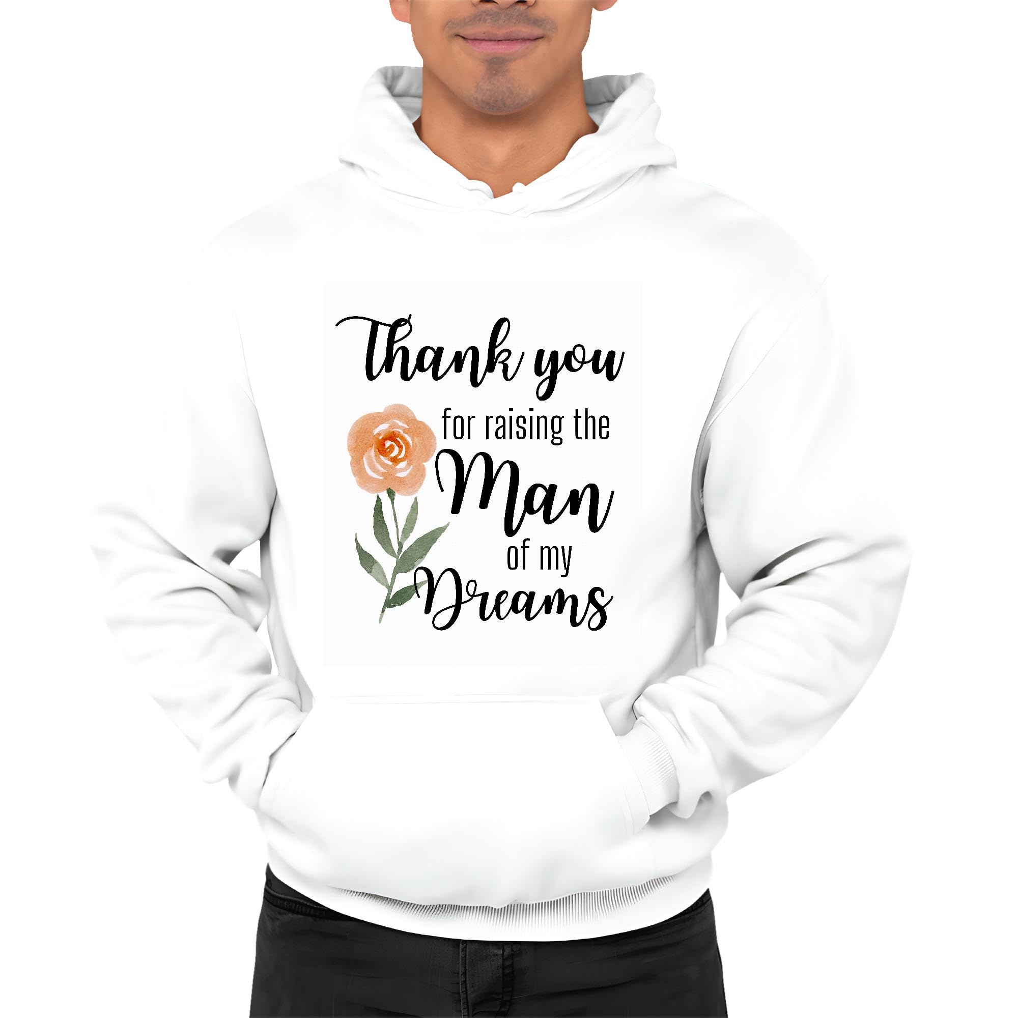 Mothers Day Gift for Mother of Groom Thank You for Raising Man of Dreams White and Muticolor Unisex Hoodie