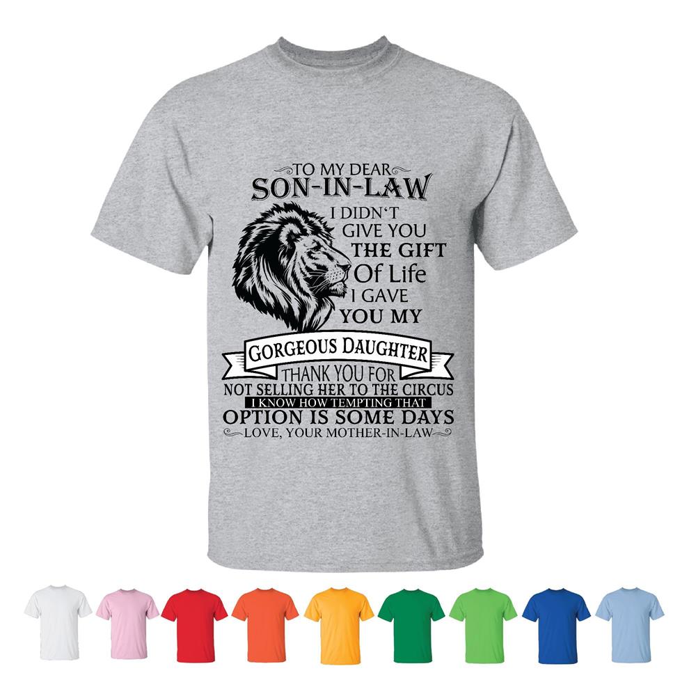 Mothers Day Gift for Son in Law Lion inspired Kudos from Mother in Law Men Women White Gray T shirt