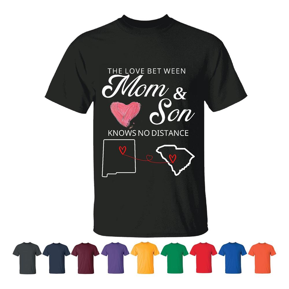 Mothers Day Gift for Son Showing Love Across State Lines NM to SC Men Women Black Multicolor T shirt