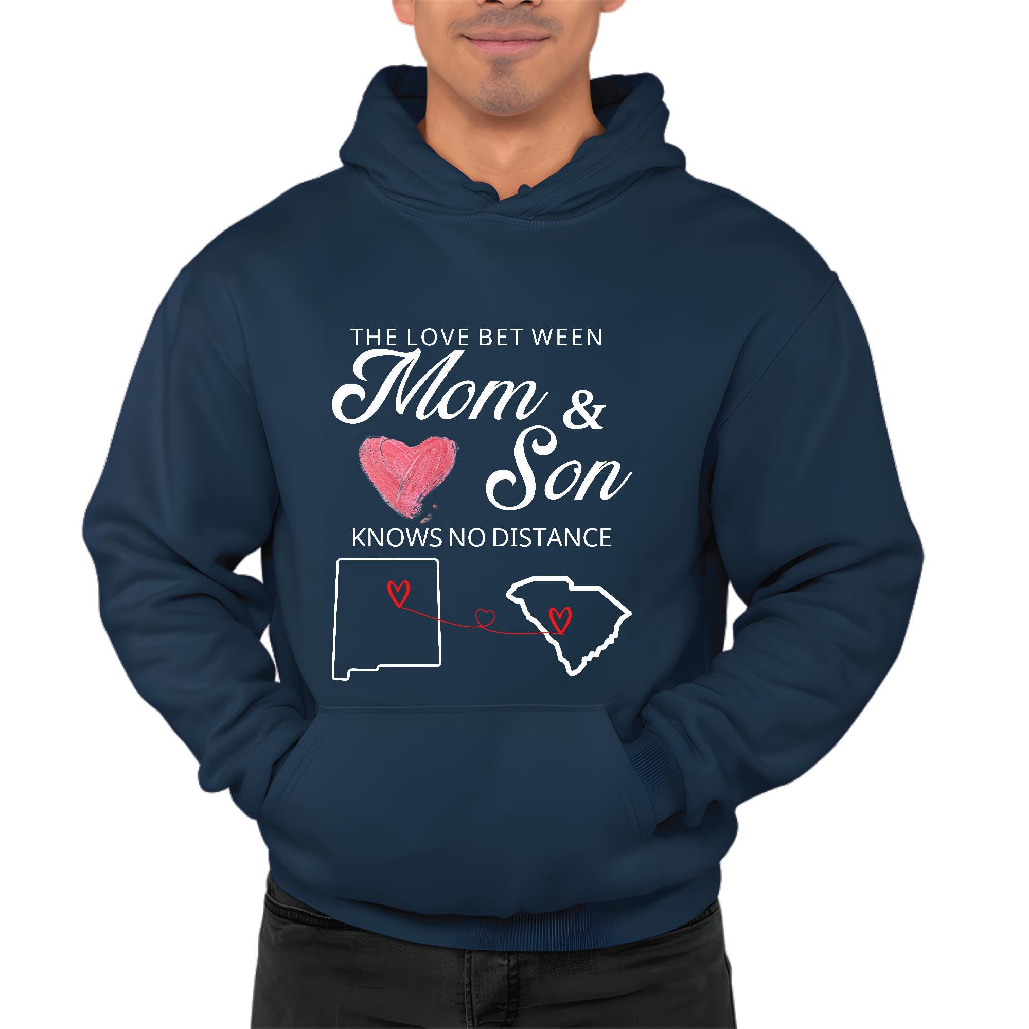 Mothers Day Gift for Son Showing Love Across State Lines NM to SC Navy and Muticolor Unisex Hoodie