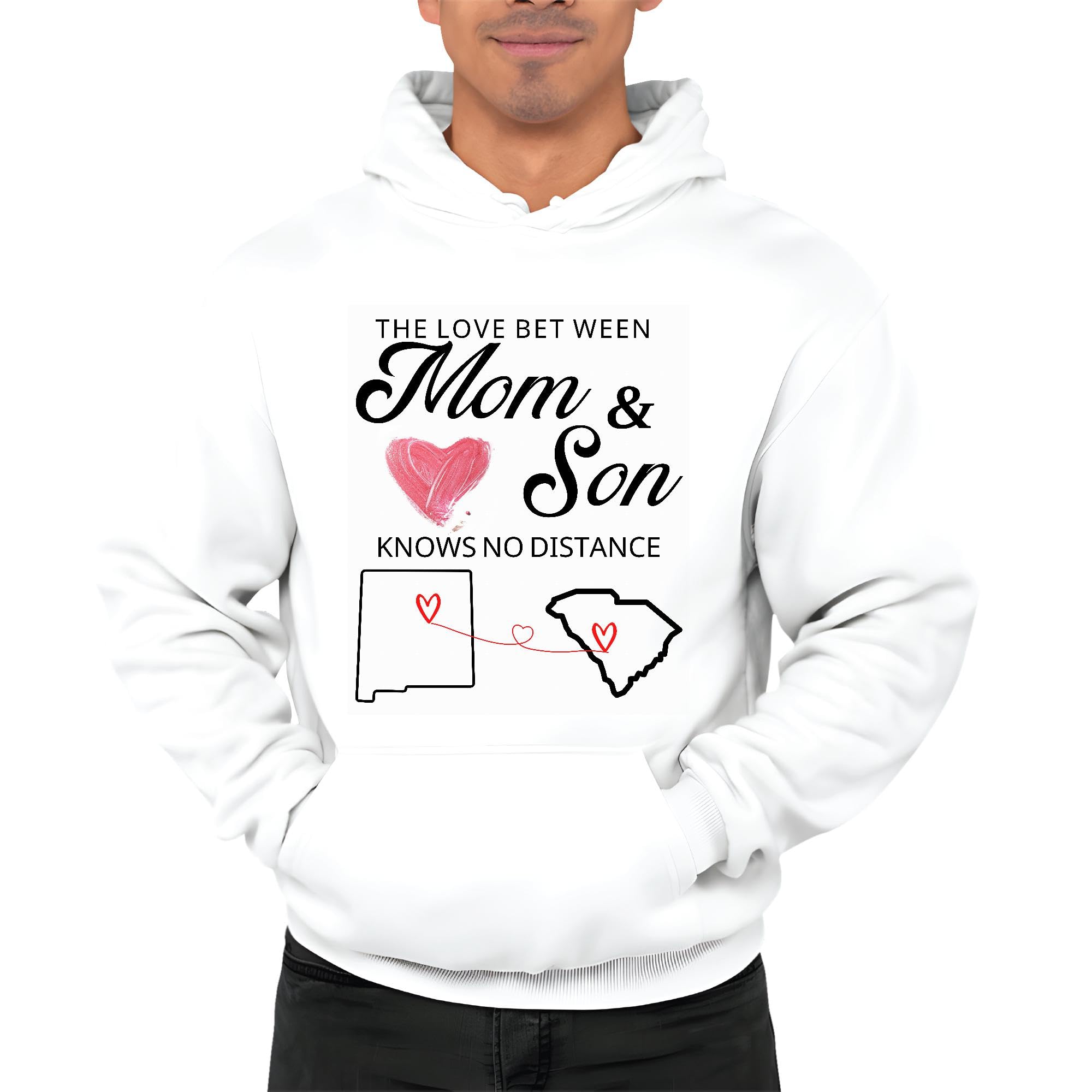 Mothers Day Gift for Son Showing Love Across State Lines NM to SC White and Muticolor Unisex Hoodie