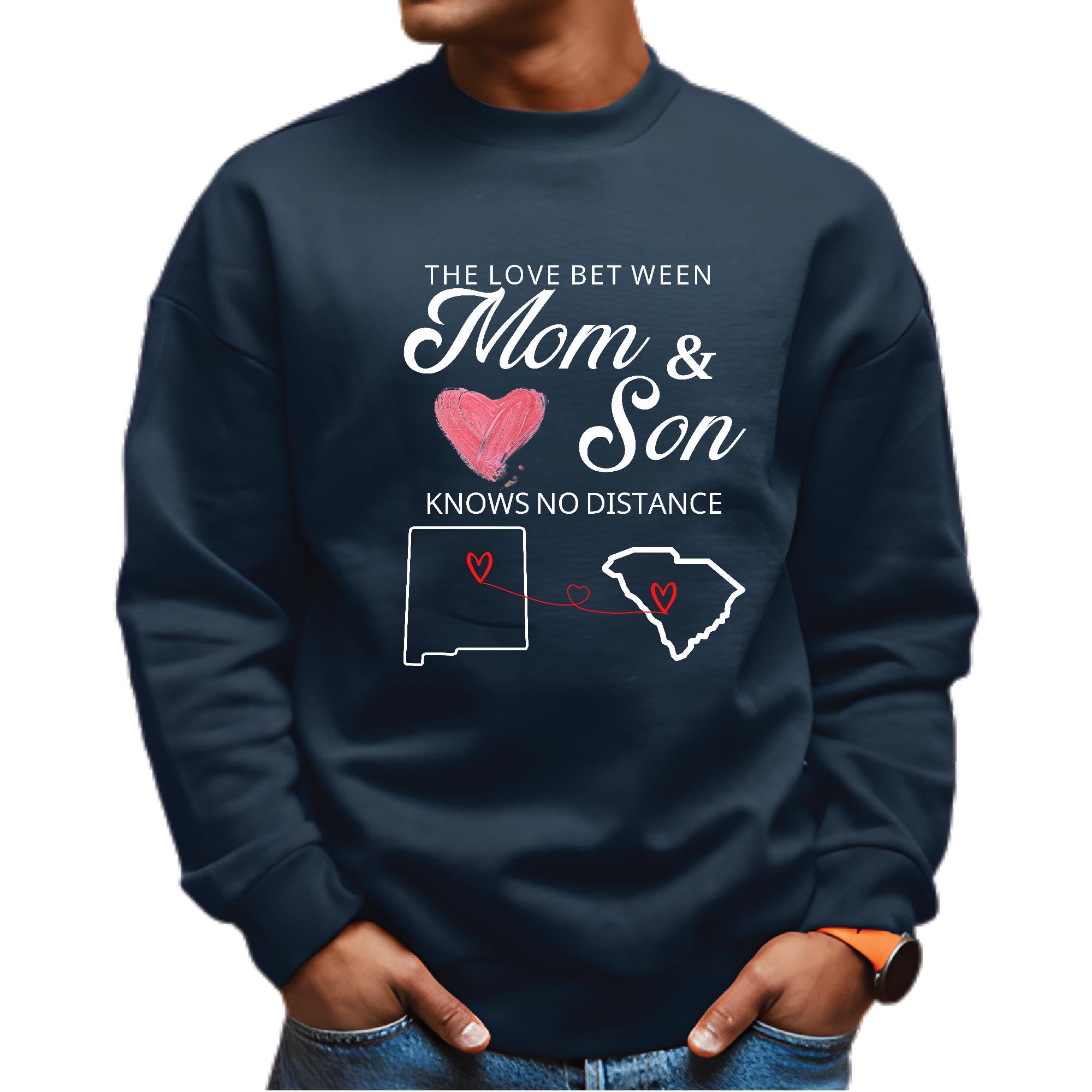 Mothers Day Gift for Son Showing Love Across State Lines NM to SC Navy Muticolor Unisex Sweatshirt