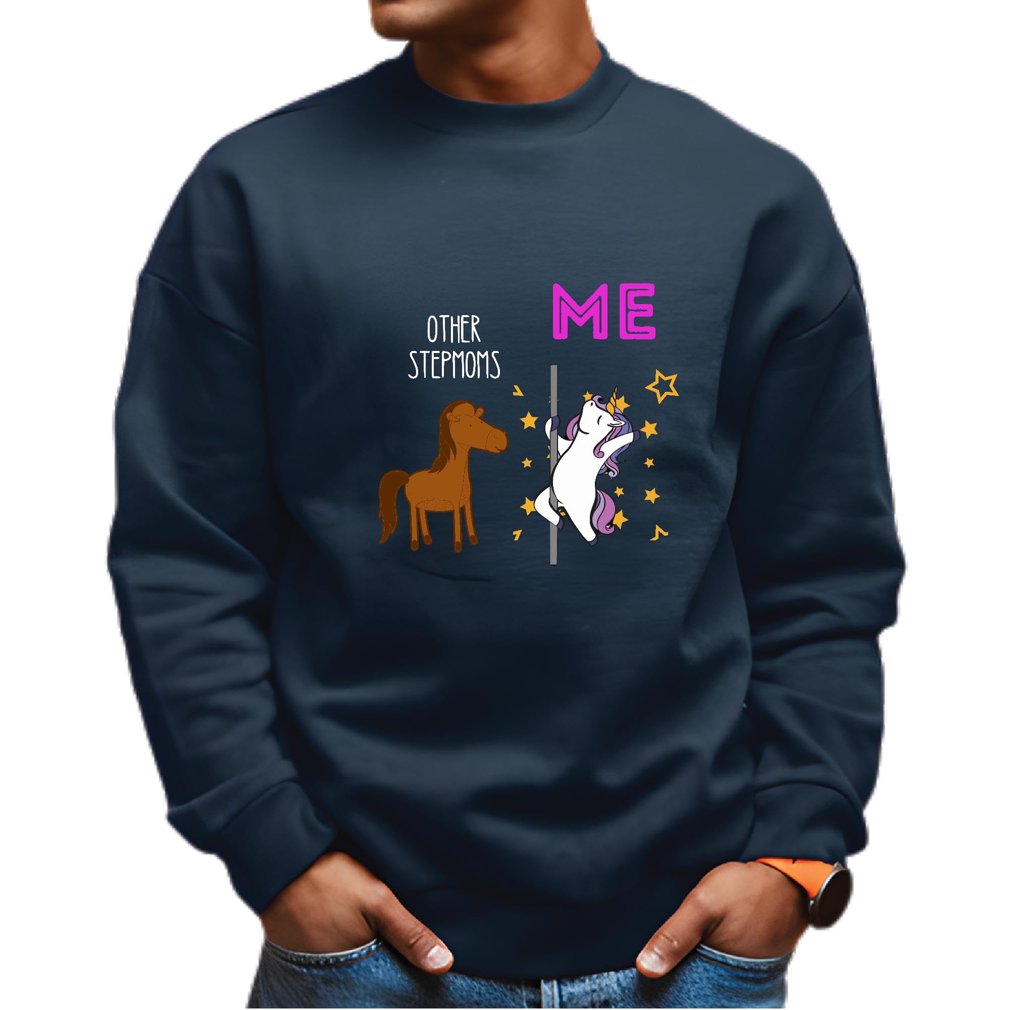 Mothers Day Gift for Stepmom Humorous Unicorn Saying for Mom Stepmother Navy Muticolor Unisex Sweatshirt