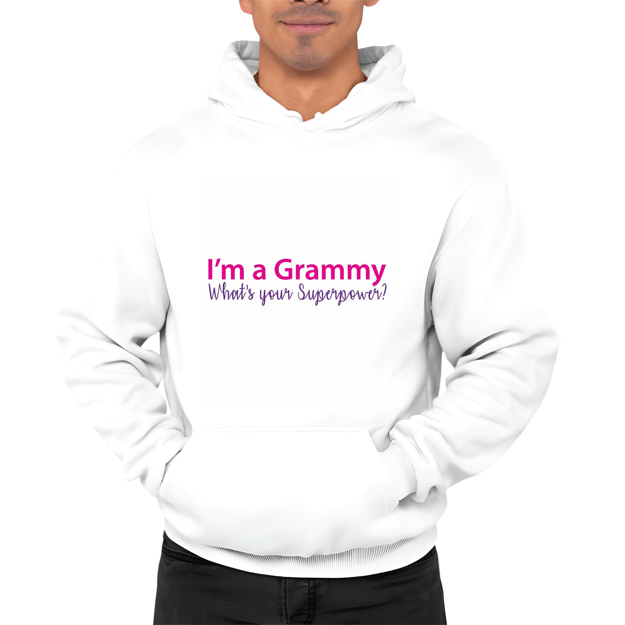 Mothers Day Gift Funny Text for Grandma Grandmother Superpower Grammy White and Muticolor Unisex Hoodie