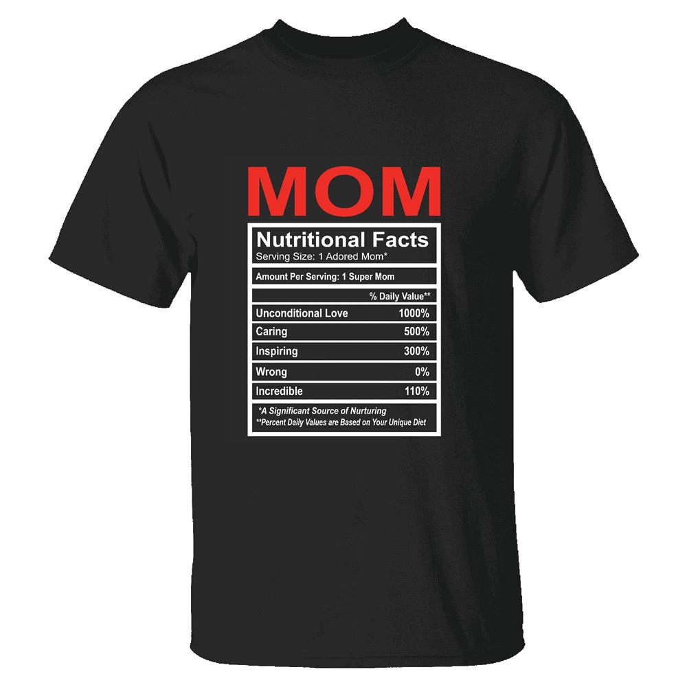 Mothers Day Gift Mom Nutrition Facts Food Label Men Women Black Multicolor T shirt