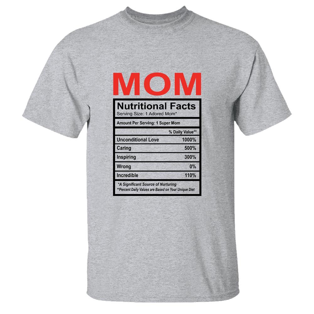 Mothers Day Gift Mom Nutrition Facts Food Label Men Women White Gray Multicolor T shirt