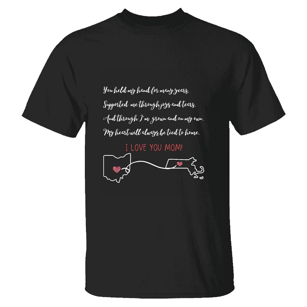 Mothers Day Gift Ohio Massachusetts Two State Humor Mom Loved Long Distance Men Women Black Multicolor T shirt