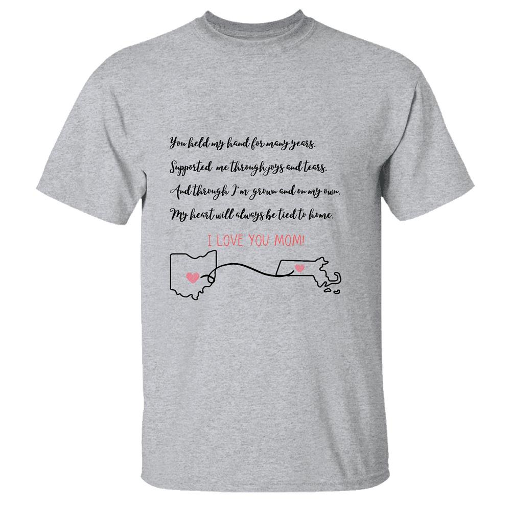 Mothers Day Gift Ohio Massachusetts Two State Humor Mom Loved Long Distance Men Women White Gray Multicolor T shirt
