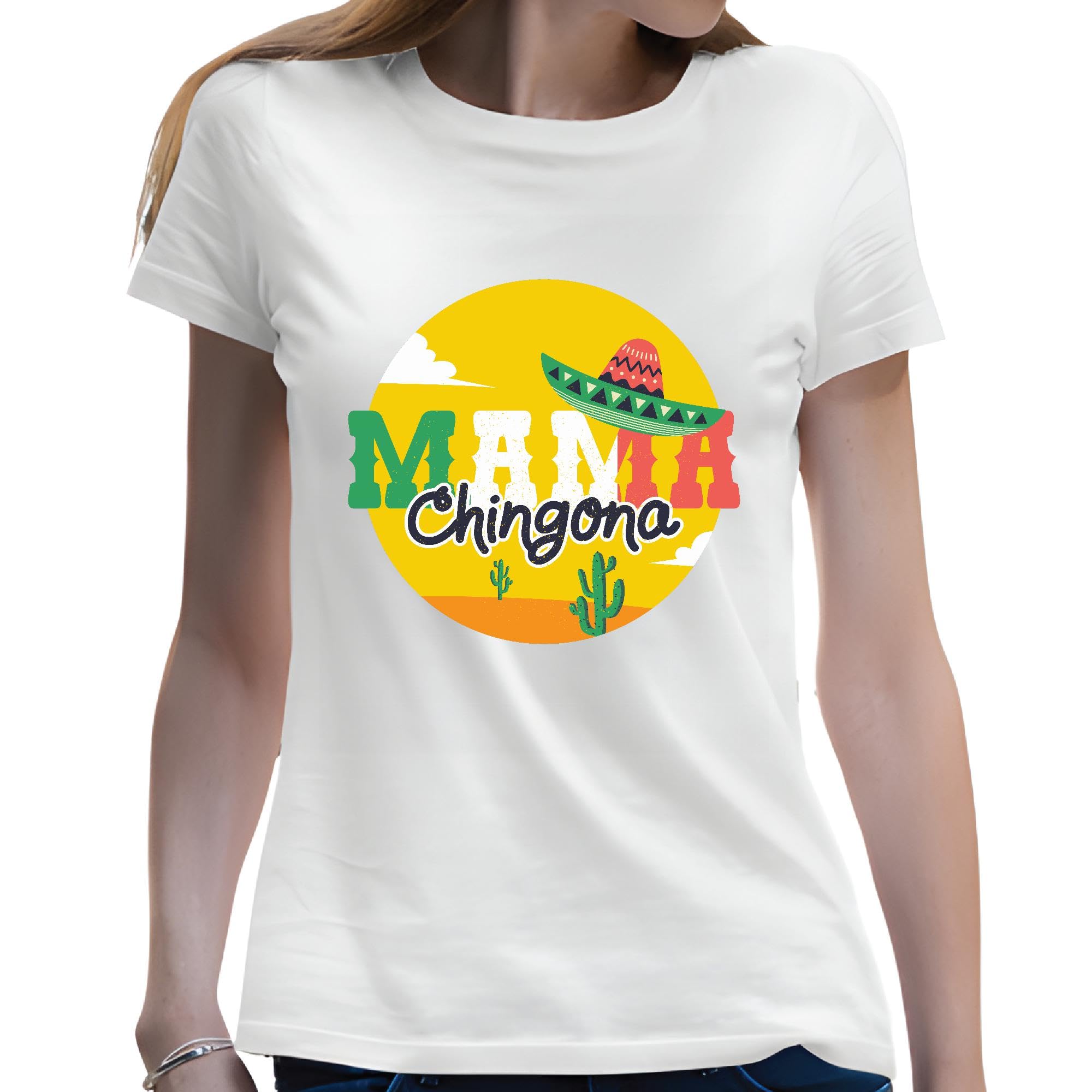 Mothers Day Gift Spanish Quote Mexican Landscape with Mama Chingona Lettering For Her Men Women White Gray Multicolor T shirt