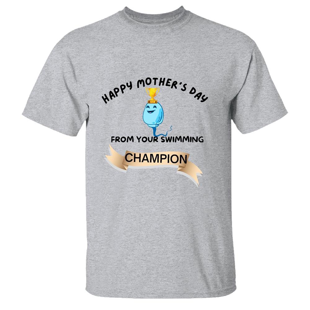 Mothers Day Gift Swimming Champion Son Daughter Humor Joke Men Women White Gray Multicolor T shirt