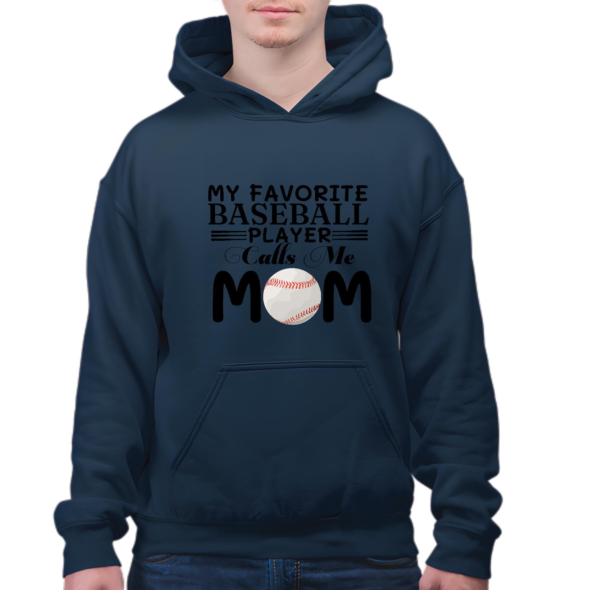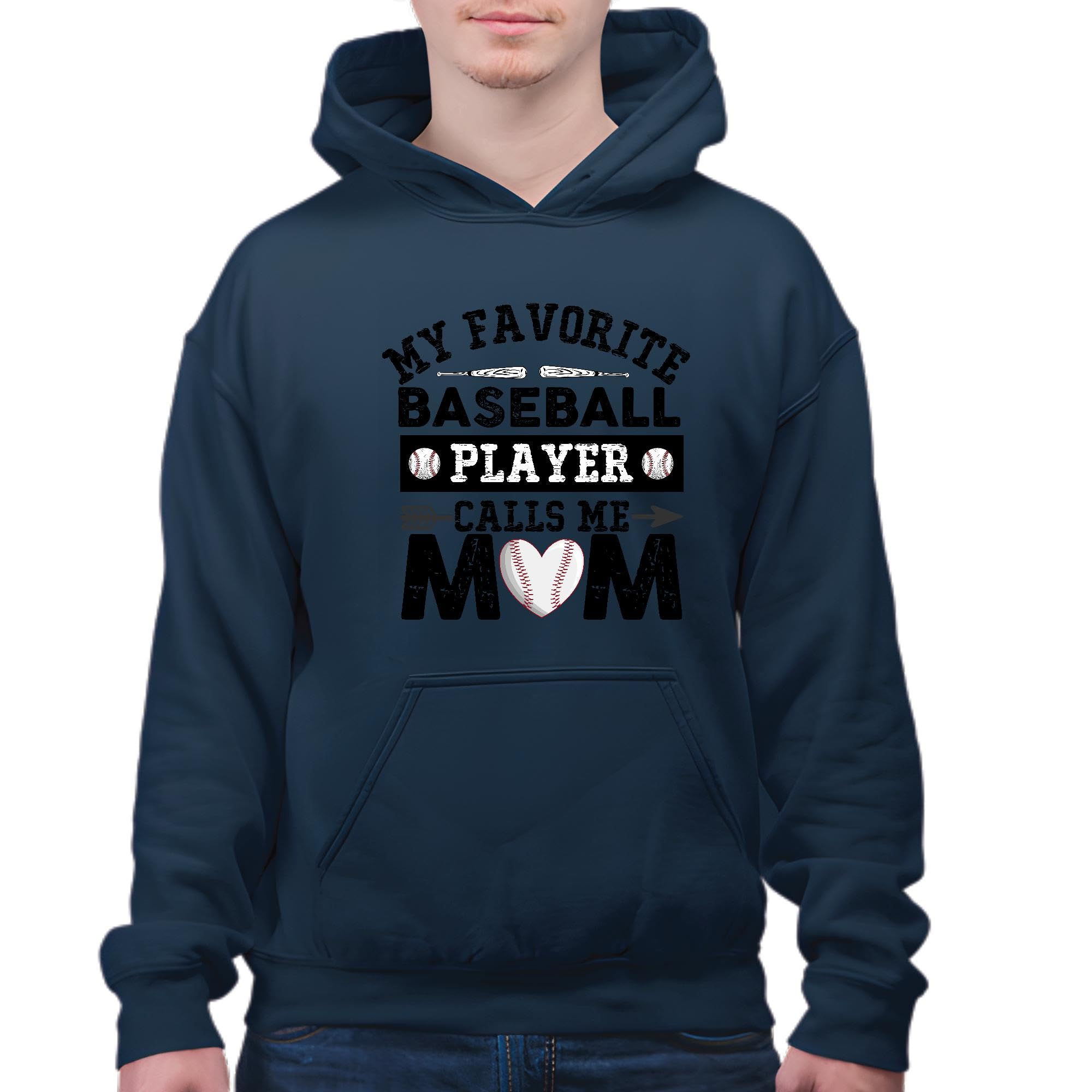 My Favorite Baseball Player Calls Me Mom Gift for Mother’s Day Navy and Muticolor Unisex Hoodie