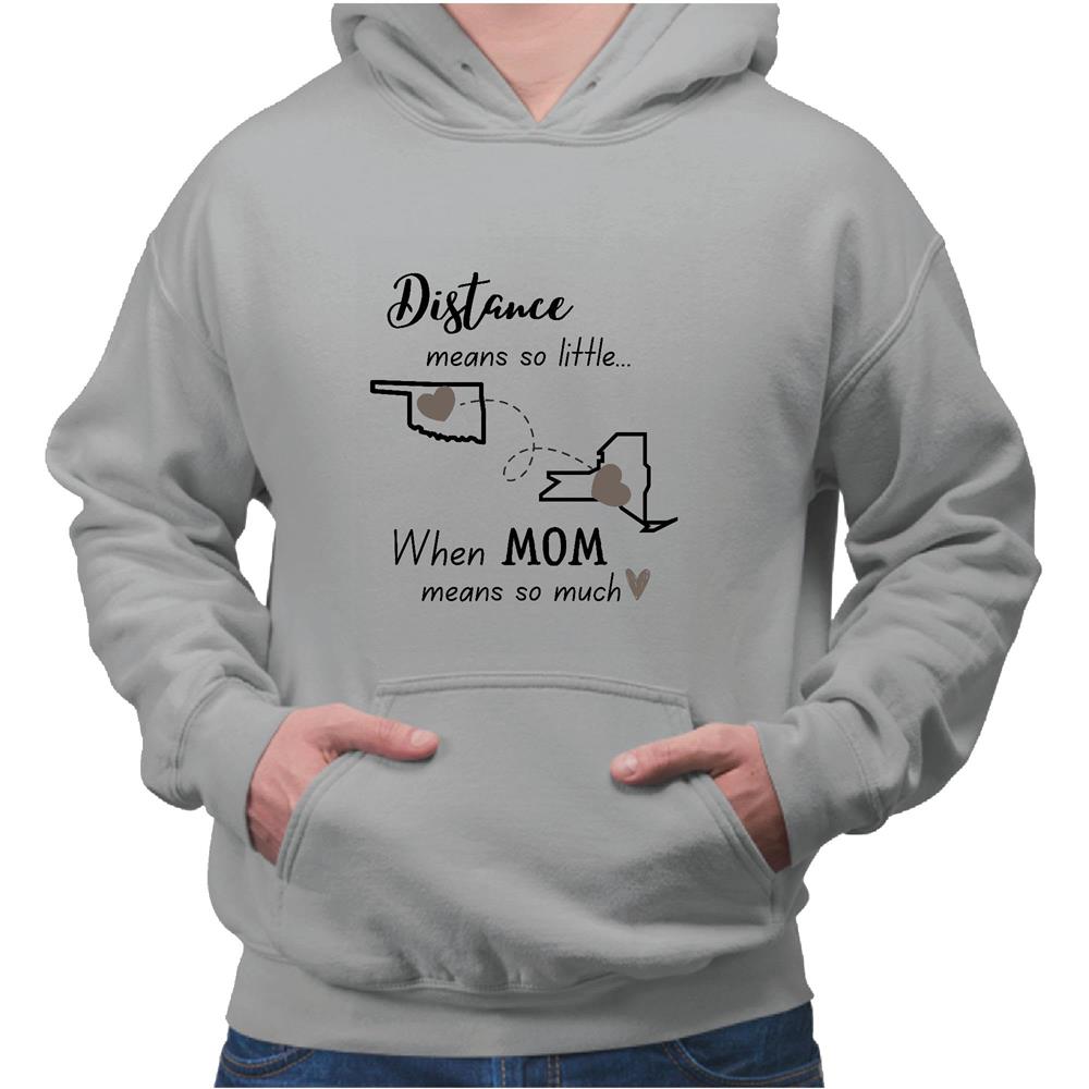 Distance State to State Gift for Mom Grandma Son Daughter on Mothers Day Gray and Muticolor Unisex Hoodie