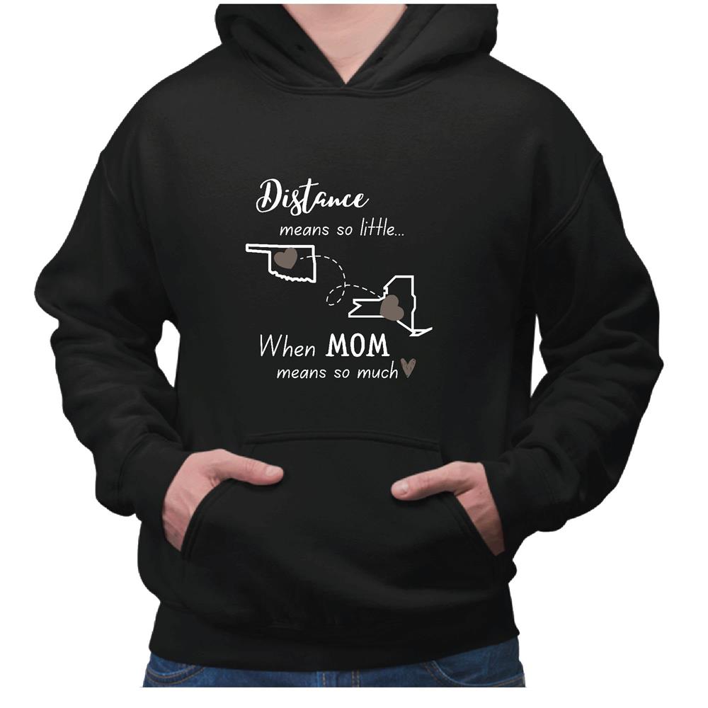 Distance State to State Gift for Mom Grandma Son Daughter on Mothers Day Black and Muticolor Unisex Hoodie