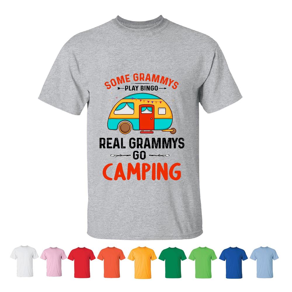 Funny Humor Family Gift for Grandma Mom on Mothers Day Bingo Camping for Real Grammys Men Women White Gray T shirt