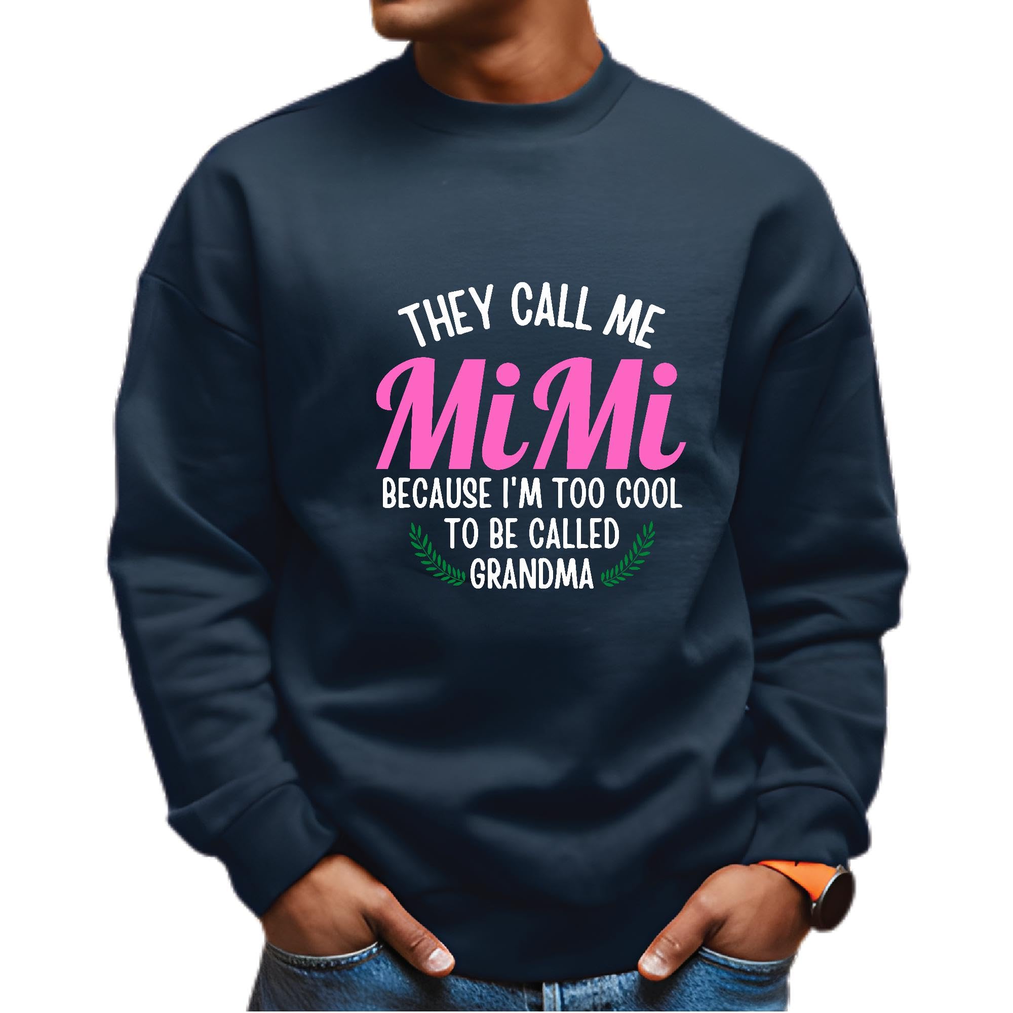 Funny Humor Gift for Grandma Mom on Mothers Day They Call Me Mimi Navy Muticolor Unisex Sweatshirt