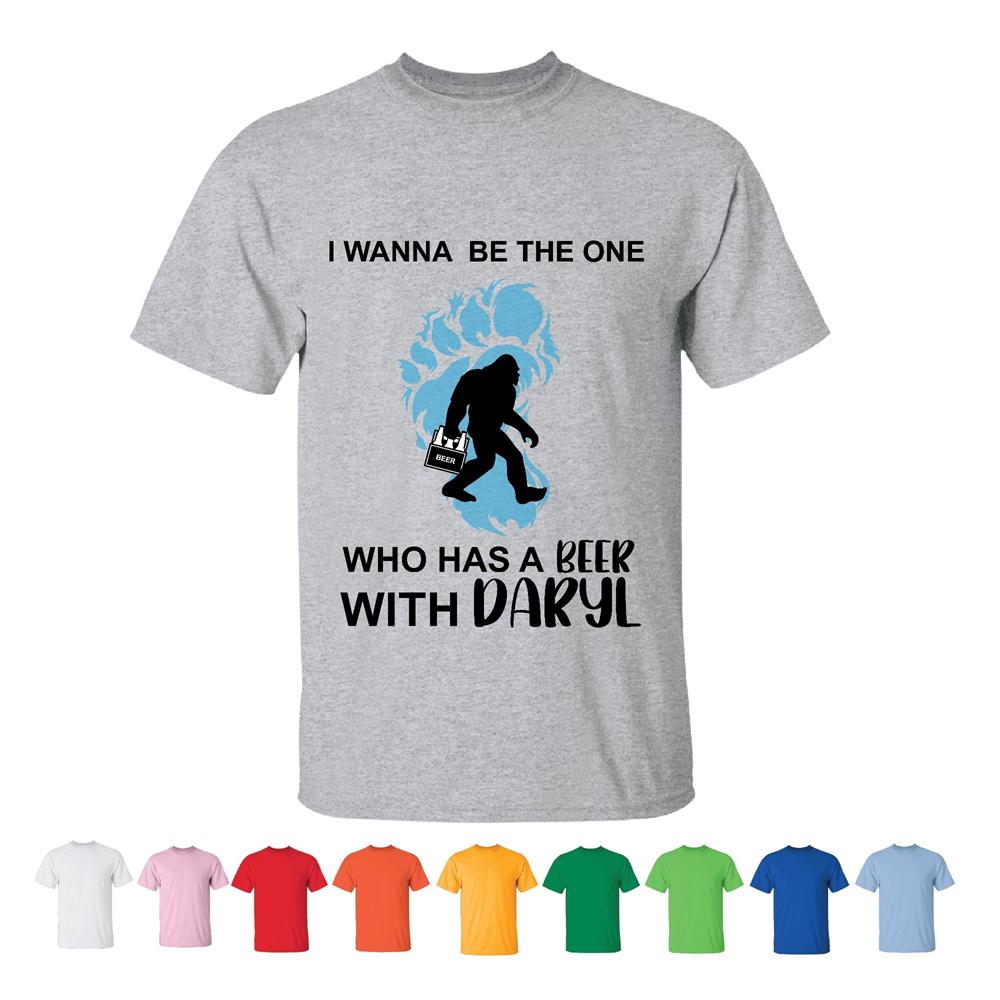Beer Lovers Gift with Daryl Bigfoot Sasquash Graphic for Men and Women Men Women White Gray T shirt