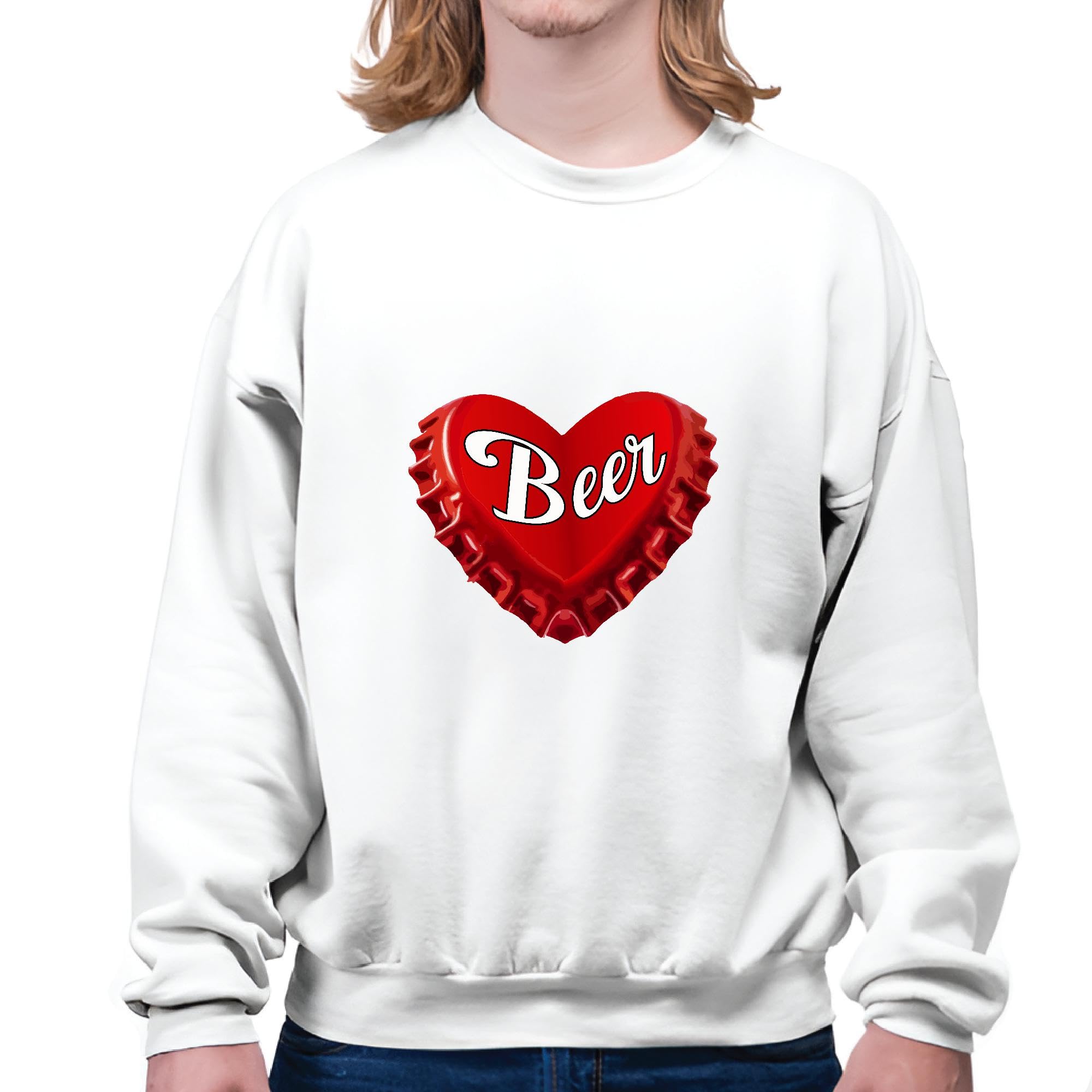 Beer Lovers Heart Shaped Bottle Cap Grey White Muticolor Unisex Sweatshirt