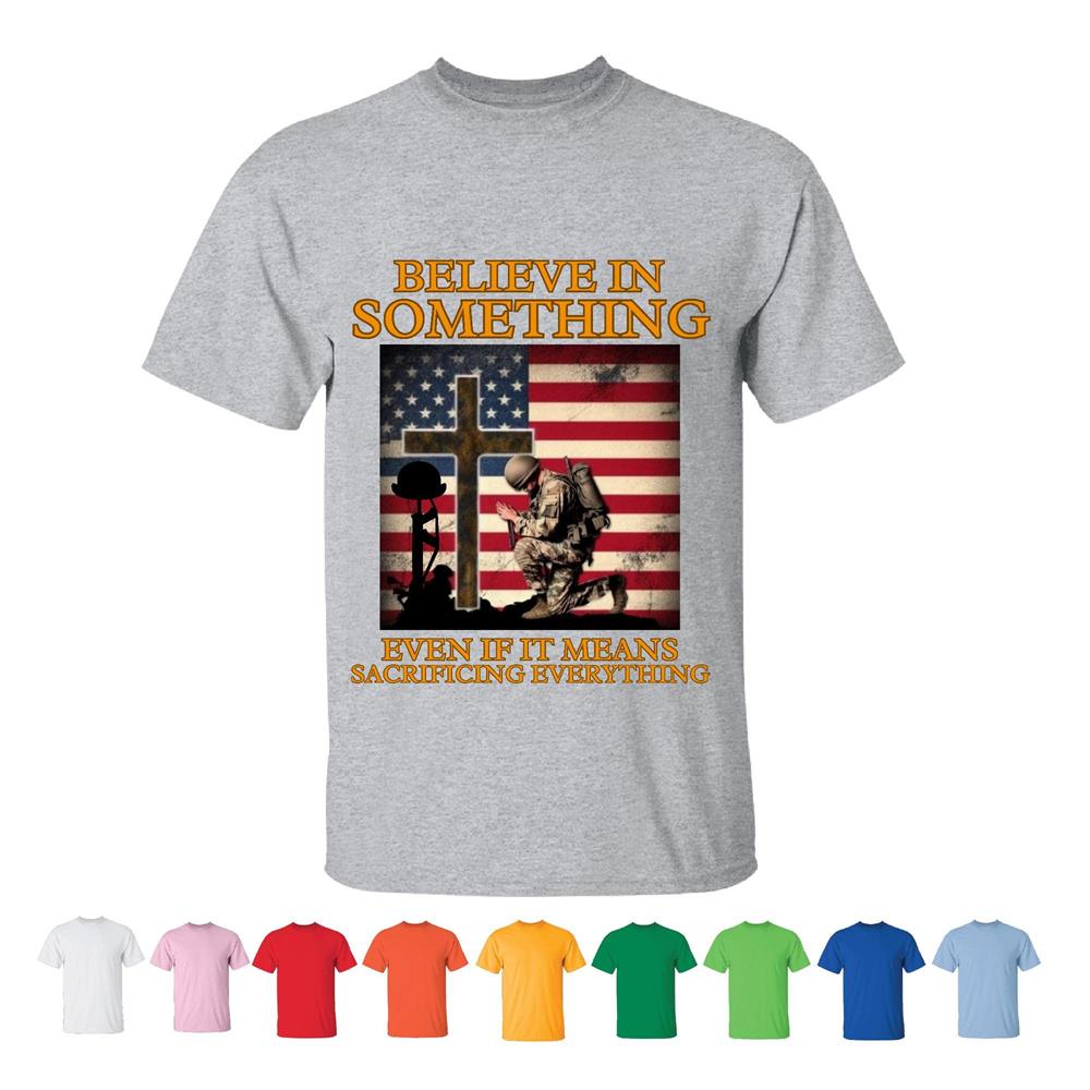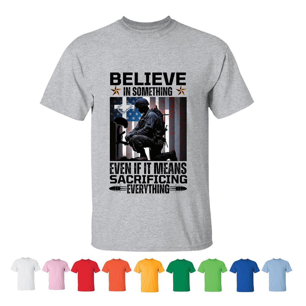 Believe In Something Even If It Means Sacrificing Everything Idea For Veteran Dad Grandpa Men Women White Gray T shirt