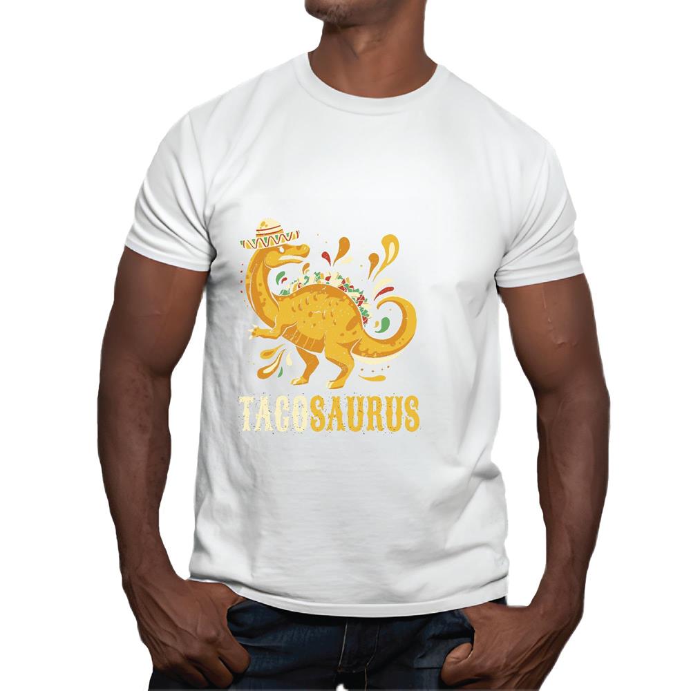 Mexican Dinosaur Tacosaurus Design Gift for Men Women Kids Men Women White Gray Multicolor T shirt